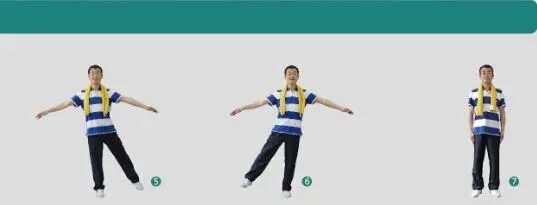 第三步:重心移于右腿換左腿練習,動作相同。