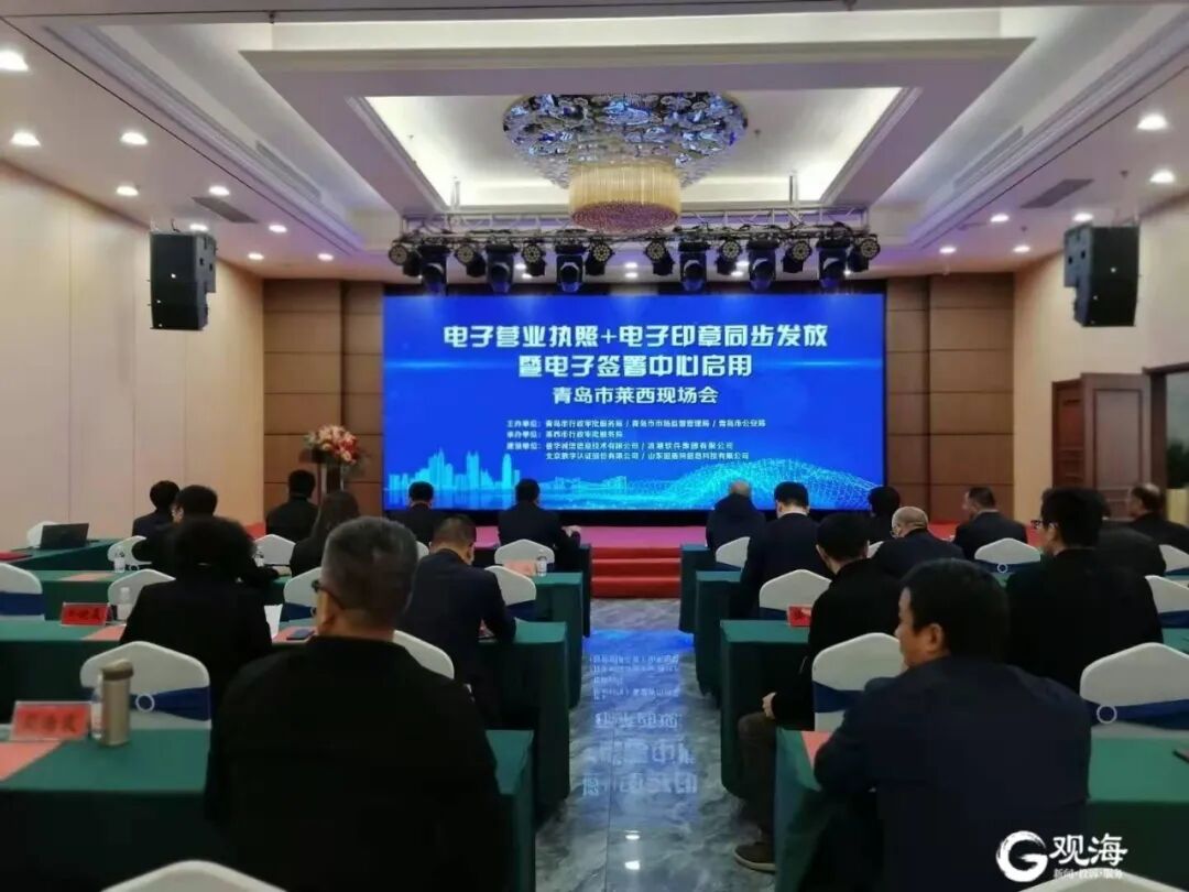 11月9日,青島市電子營業執照+電子印章同步發放暨電子簽署中心啟用現場會在萊西市召開,青島實現省內首次電子營業執照與電子印章同步發放,并率先創建了電子營業執照與電子印章的應用場景“青易辦”電子簽署中心,并于當天同步啟用。