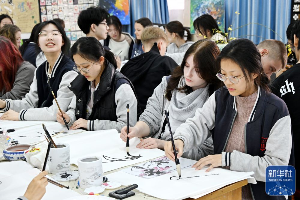 當(dāng)日,在山東省青島第九中學(xué)進(jìn)行友好訪問(wèn)的德國(guó)馬格德堡市中學(xué)生參加了一堂別開(kāi)生面的傳統(tǒng)文化藝術(shù)實(shí)踐課,與中國(guó)小伙伴們一起體驗(yàn)非遺民俗、練習(xí)中國(guó)畫基礎(chǔ),了解和學(xué)習(xí)中華傳統(tǒng)文化。