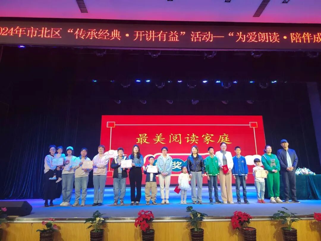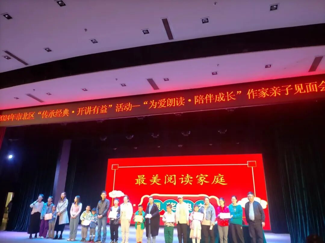 本次活動是由市北區文化和旅游局、致公黨青島市委文化工作委員會、青島市桔燈全民閱讀志愿服務中心主辦,市北區圖書館、致公黨市北區委四支部、彩虹花兒童閱讀成長中心承辦。 活動現場由市北區圖書館紀館長、著名圖畫書作家徐建明老師、青島繁星助學公益服務中心管主任分別為一直堅持陪伴孩子閱讀的23組家庭頒發了“最美閱讀家庭”榮譽證書。