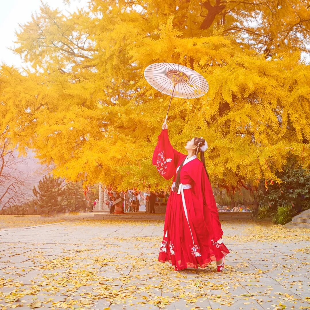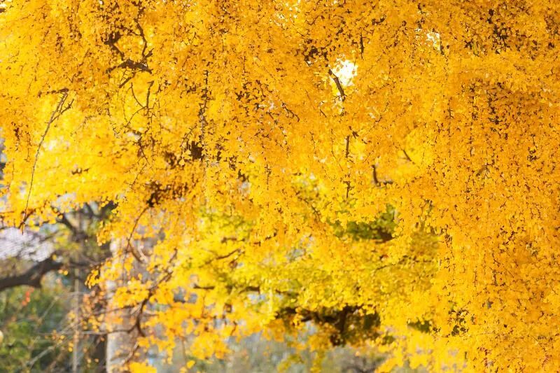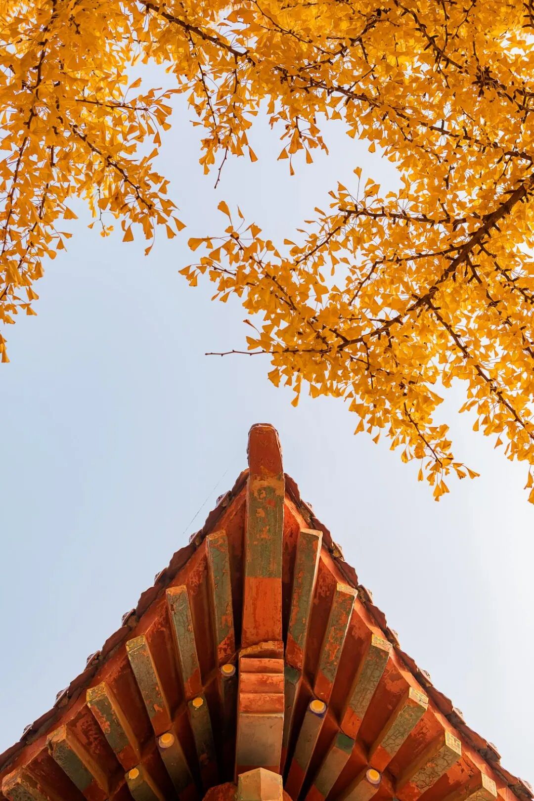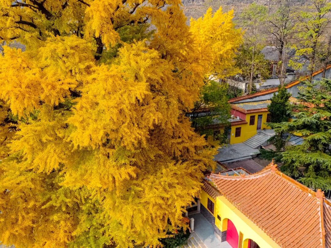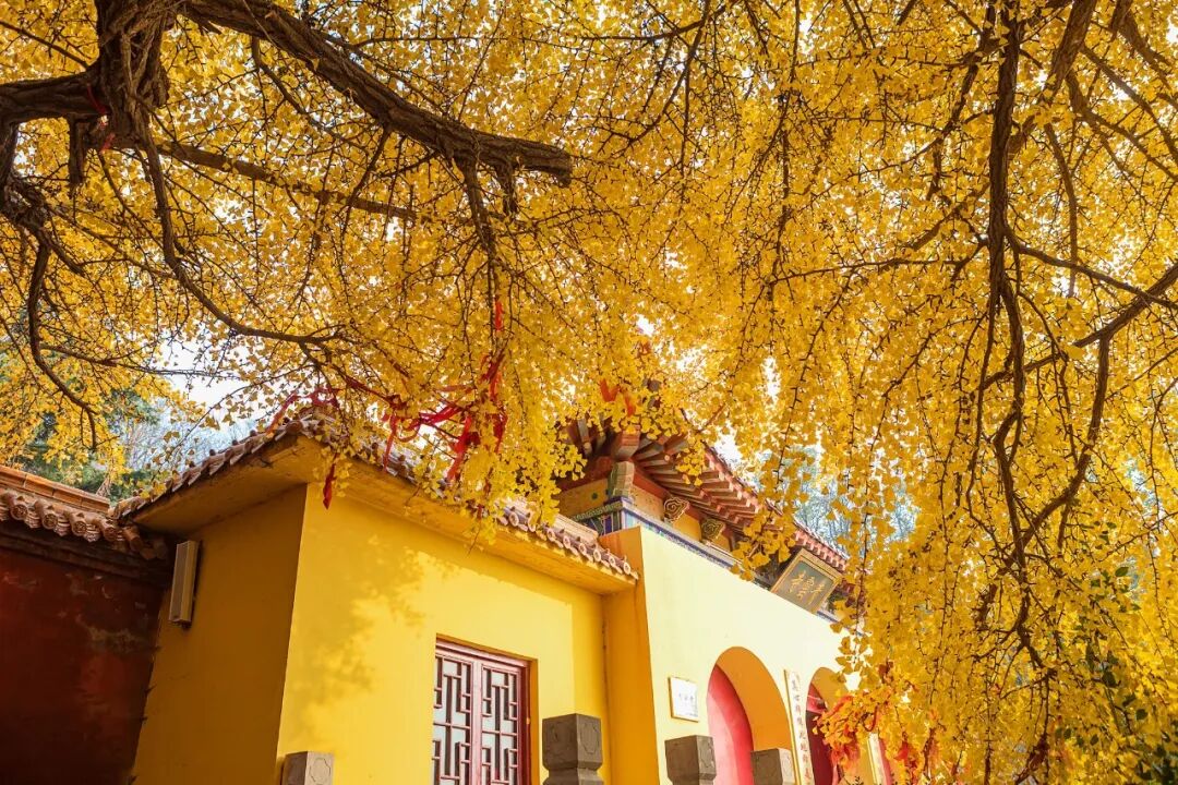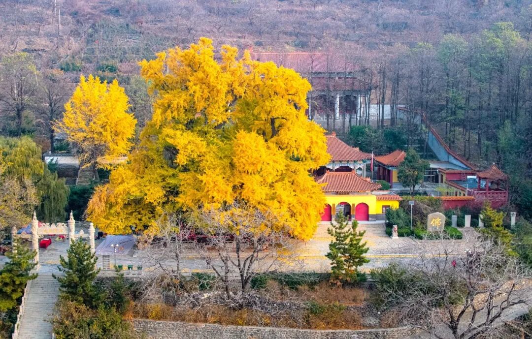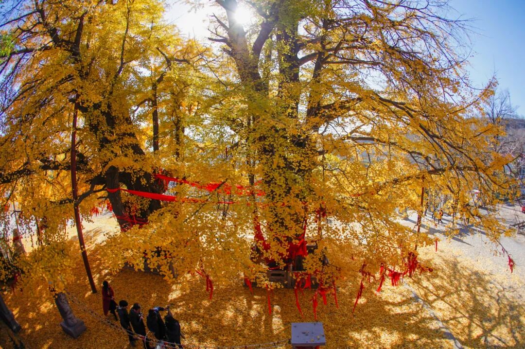 隨著天氣轉(zhuǎn)涼,古銀杏樹到了最佳觀賞時(shí)節(jié)。一樹金縷衣,半山黃金甲,兩株銀杏古樹落英繽紛鋪滿一地,宛如金色地毯。
