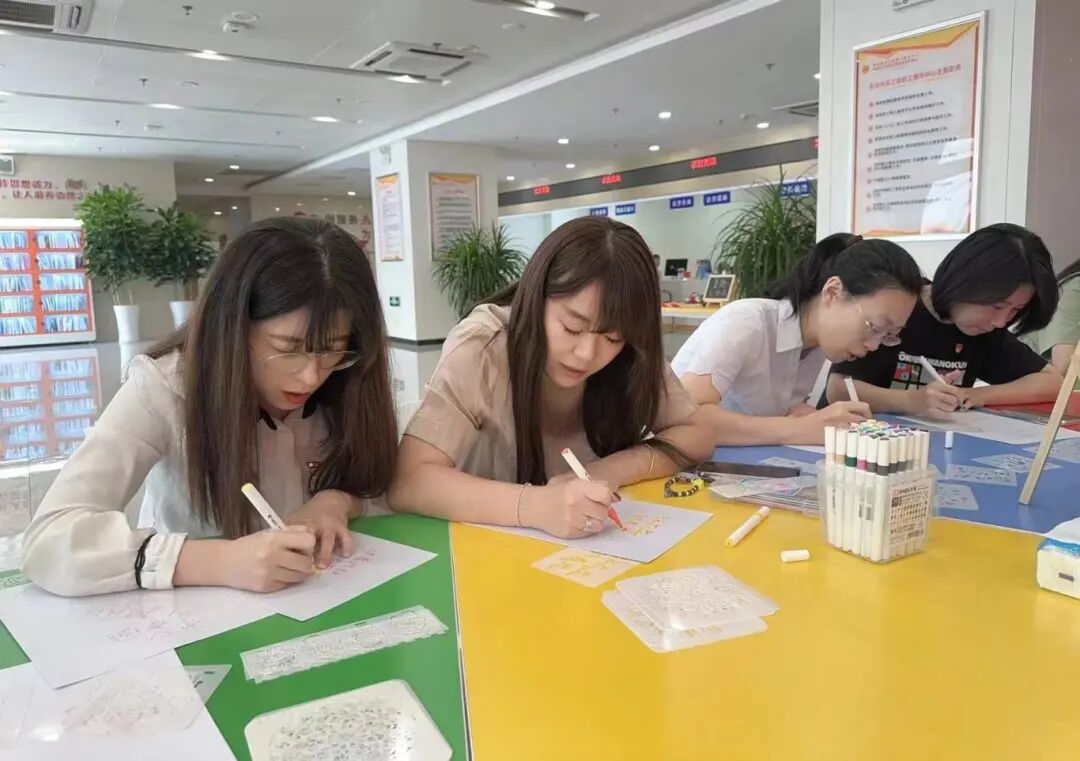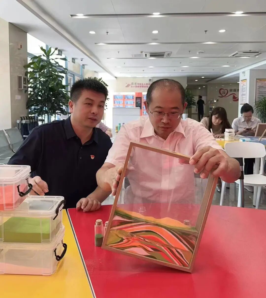 活動伊始,一場別開生面的心理互動體驗盛宴拉開了序幕,黨員干部們紛紛參與到精心設計的互動游戲中,如“煩惱粉碎機”讓大家在輕松愉快的氛圍中釋放工作壓力與生活煩惱,“涂色心樂園”則以色彩斑斕的畫卡為載體,讓每個人用色彩表達出積極向上的內心世界,“漆扇制作體驗”更是將傳統工藝與愛國情懷相結合,黨員干部們親手繪制以愛國為主題的漆扇,每一筆都凝聚著對祖國的深情厚誼與美好祝愿等。