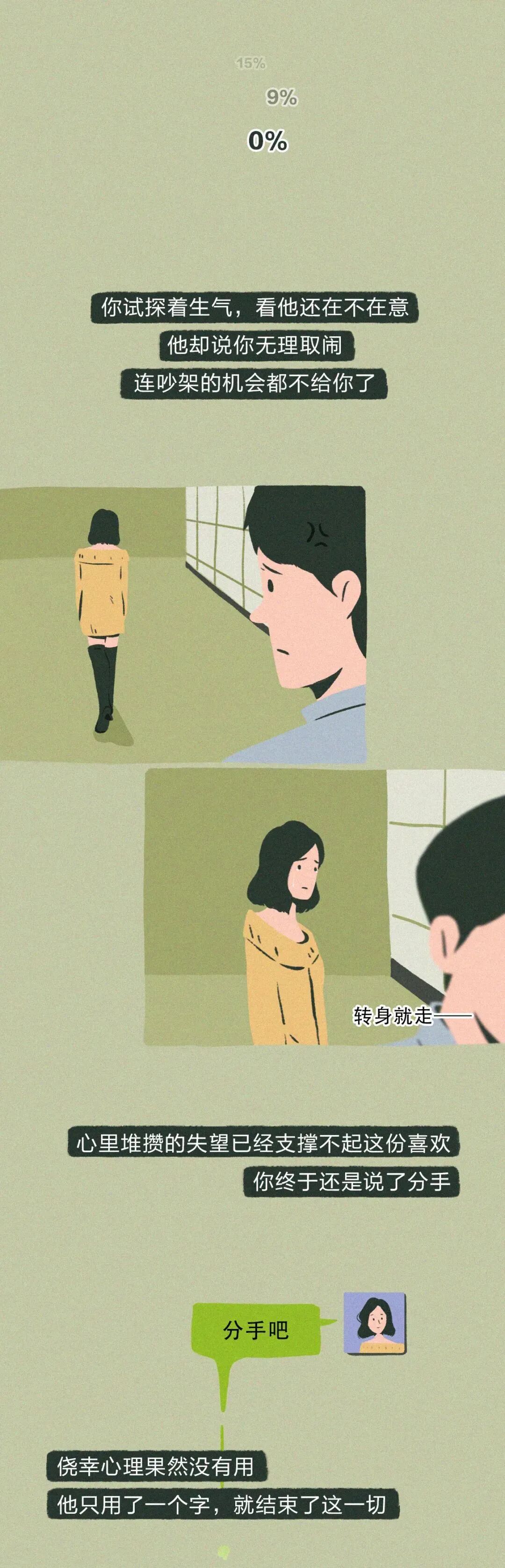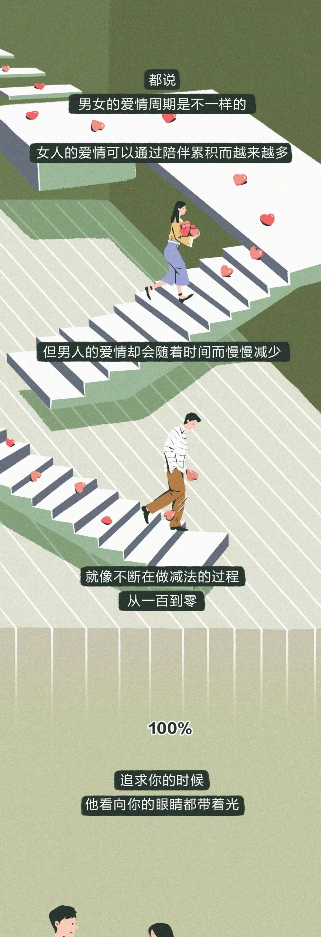 寫這樣一篇文章,當然不是一概而論地認為:所有男生的愛都是隨時間遞減的。 只是發現后臺的留言中,確實有許多人都經歷過,或正在經歷著從一百分到零分的感情。 愛情里的人,都是敏感的。就算嘴上不說,細節里也全都能看出來。 不要騙自己了。 有些東西,變了就是變了。 我確實覺得,遇到一個能永遠百分百愛你的人,是需要些運氣的。 如果還沒遇到,那就先努力地愛自己吧。 給命運一些時間。