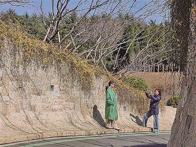 在浮山森林公園桃花塢,沿湖建設了長廊、棧道、拱橋,營造出獨具韻味的濱湖活動空間。探幽谷南臨桃花塢,東接文翠湖,南側入口處石砌擋墻如山谷石壁,坡頂兩側種植了山杏樹,形成別具一格的自然林蔭空間。這兩處是尋迎春、連翹的最佳去處,當沿著蜿蜒的綠道穿梭,迎春、連翹簇擁,嗅得幽幽清香,這是專屬春天的味道。