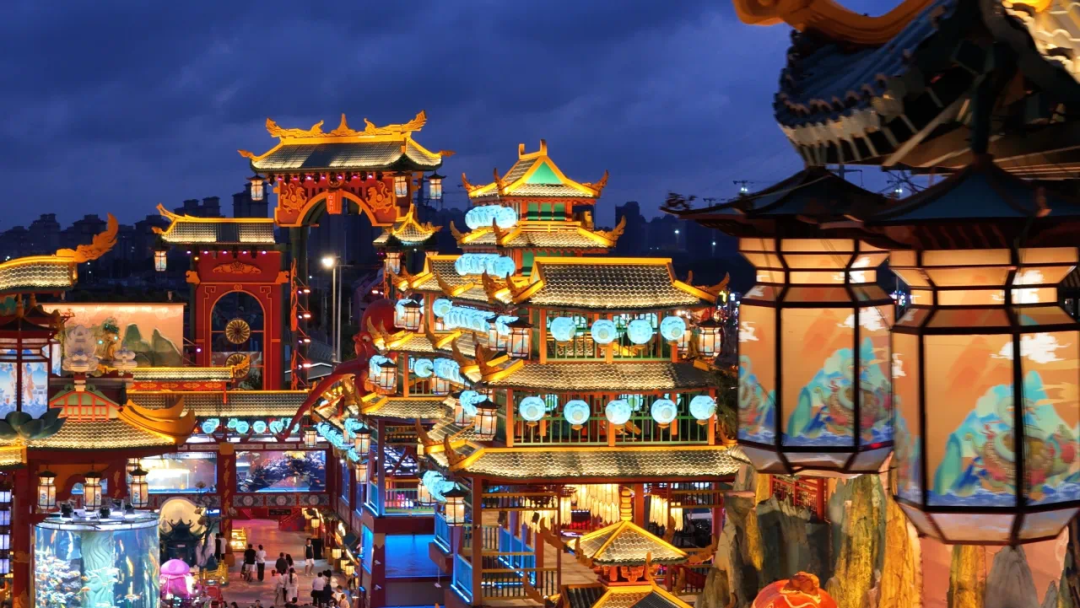 青島明月山海間打造了海夢奇潭、雨林蜃境、熔巖淺漿、萬象山海四大主題街區,帶你沉浸式體驗一場流光溢彩的國潮奇妙游。光影變幻間,山巒起伏,云霧繚繞,在這里,每一步都像是在歷史的畫卷中漫步。