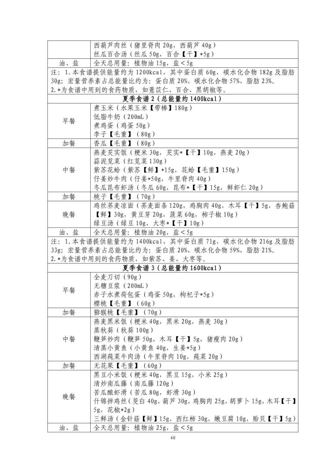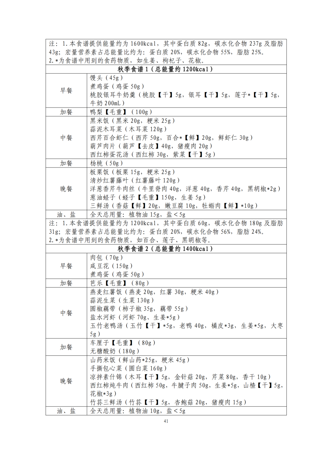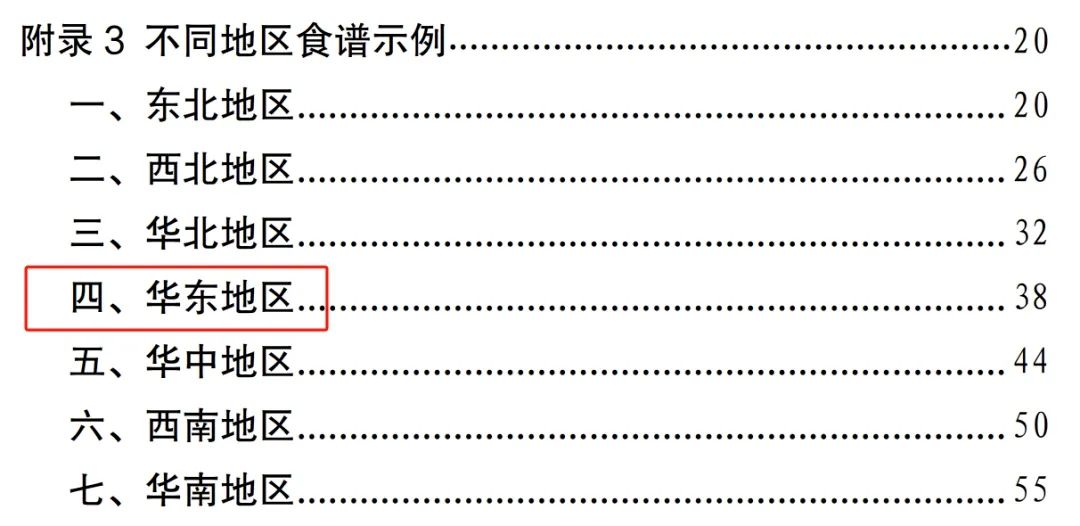 值得注意的是,這份食譜細化到了全國不同地區的食譜示例,并備注了食譜的“總能量”。