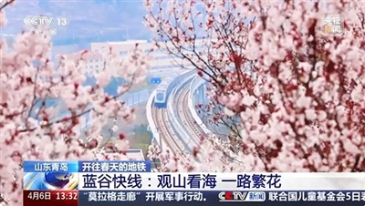 在青島,有一條穿梭于山海之間的地鐵,每年的三四月份,沿途的櫻桃花、櫻花、杏花、桃花次第開放,坐著地鐵去賞花成為了不少市民游客的出游選擇。近日,這條藍谷快線被央視新聞直播間欄目點贊。