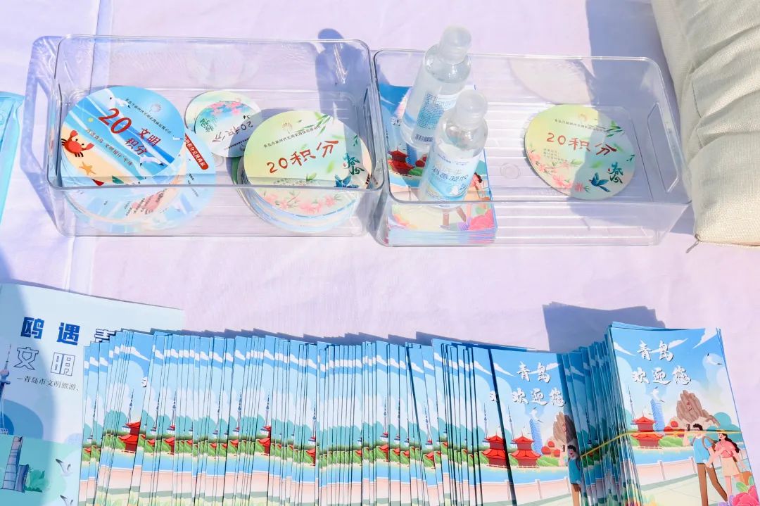 體驗文明實踐“微積分”。將文明觀鷗、文明旅游融合新時代文明實踐體驗展示區,以文明實踐活動為紐帶,實現文明行為踐行與激勵的“循環流動”、市民游客文明實踐體驗和商家店鋪美德信用實踐的“雙向奔赴”(市民游客在文明旅游活動中獲得相應積分,可活動現場兌換實物,如“60積分=1個海鷗馬克杯”“40積分=1個文明實踐抱枕”,也可同步參與青島市中山路文明實踐體驗展示區文明聯盟餐飲店,如絳雪青嵐、東方早茶、木滋嗒味等商家的優惠活動)。