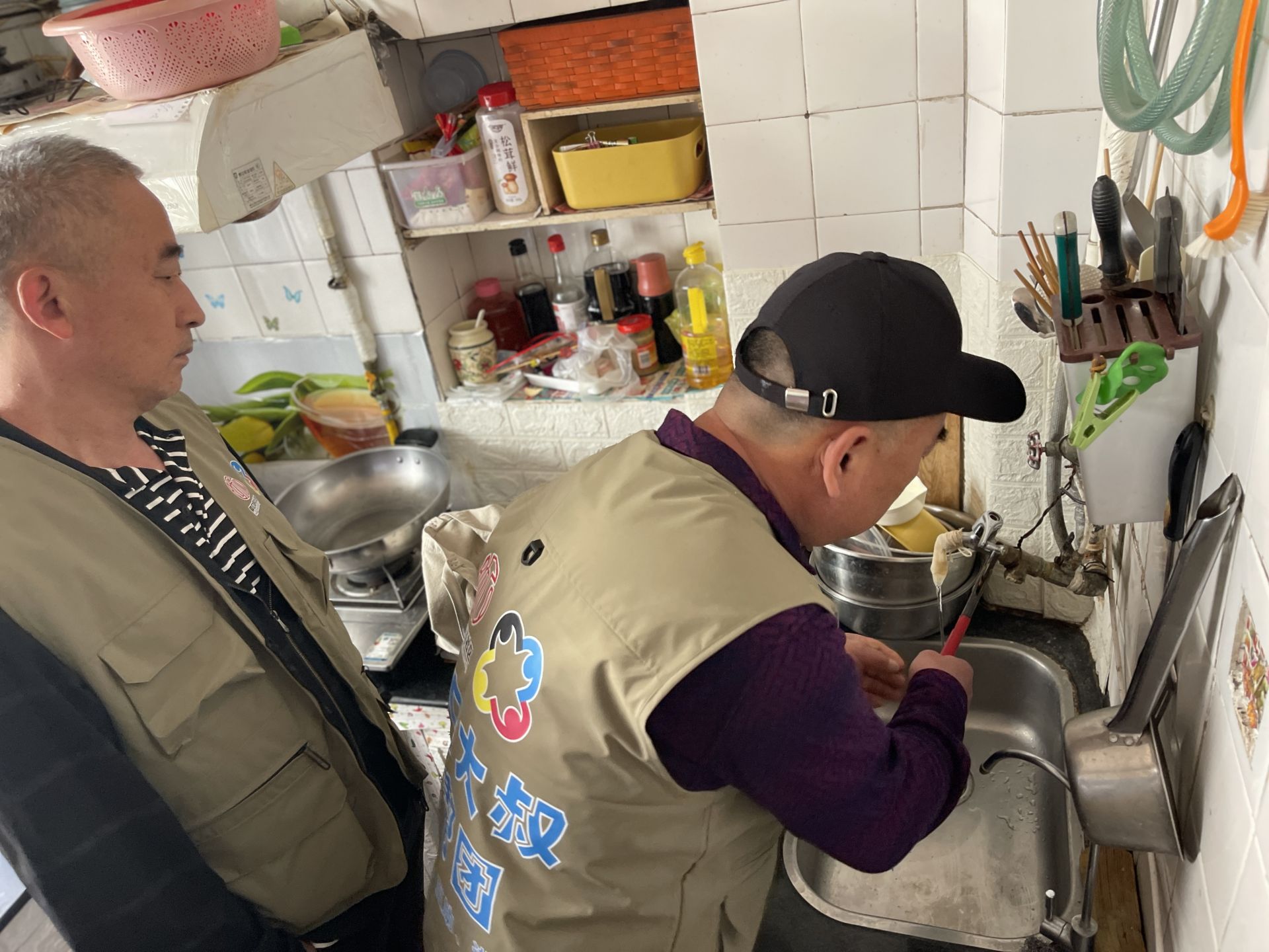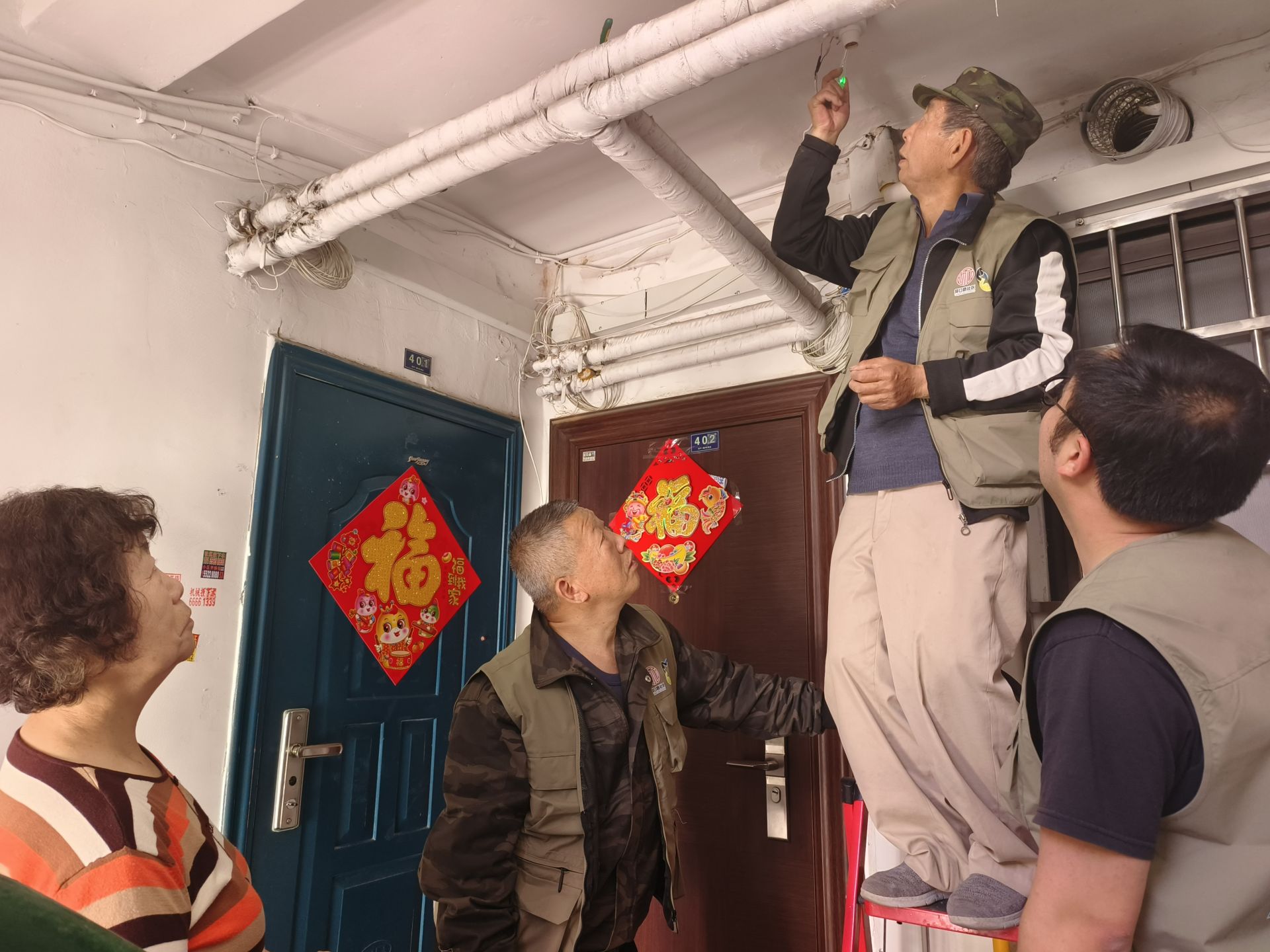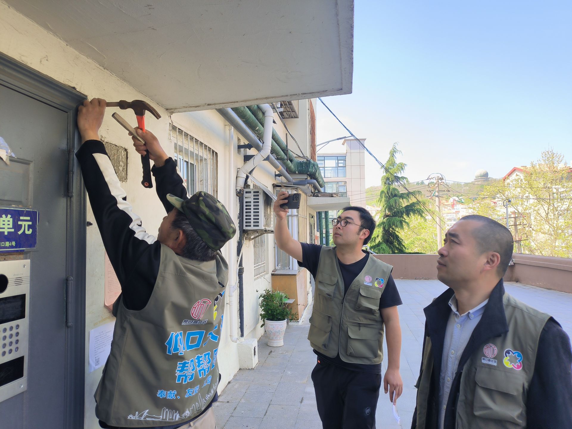 為增強居民的歸屬感和參與感,社區居委會主任吳丹為幫幫團成員發放定制馬甲,嶄新的墨綠色馬甲上,“仰口大叔幫幫團”字樣格外醒目,這不僅是身份的象征,更是一份沉甸甸的責任。隨后,幫幫團兵分多路,深入樓院開展“沉浸式”服務。在仰口路4號,成員們合力維修損壞的單元門和公共座椅,并邀請過往居民現場觀摩學習;在仰口路20號,志愿者帶著專業工具,為低保家庭更換漏水的水龍頭,并手把手地教居民使用新設備;在曉望路13號、17號,志愿者踩著梯子為居民調試院內照明燈亮燈時間;還有成員們穿梭在華嚴一路3號、華嚴一路5號樓道間,將一盞盞感應燈更換到位,讓溫暖的燈光照亮居民回家的路。“我也想加入幫幫團,為大家出份力!”看到幫幫團成員們忙碌的身影,圍觀的居民劉大哥主動請纓。從“旁觀者”到“參與者”,越來越多的居民被這種互助精神感染,加入到社區共建的隊伍中來。這種轉變,正是幫幫團提升居民參與感的生動體現,也讓“社區是我家,建設靠大家”的理念深入人心。