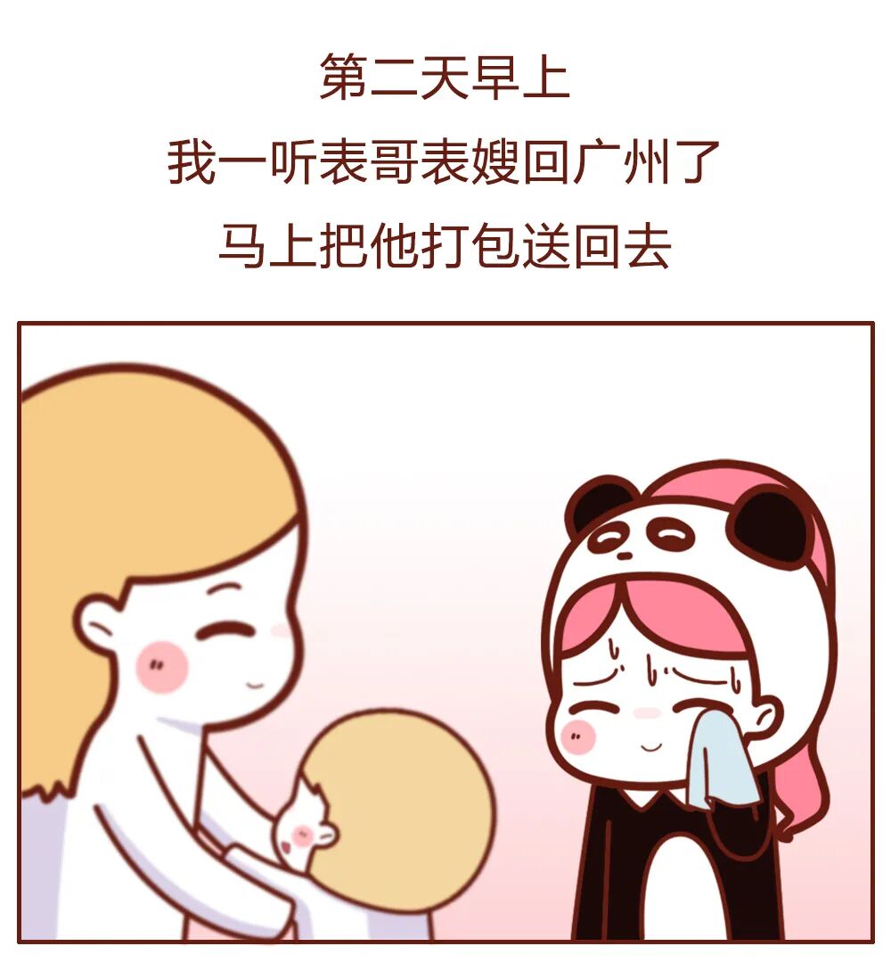 第二天早上,我一聽表哥表嫂回廣州了,馬不停蹄地就把浩浩打包送了回去。