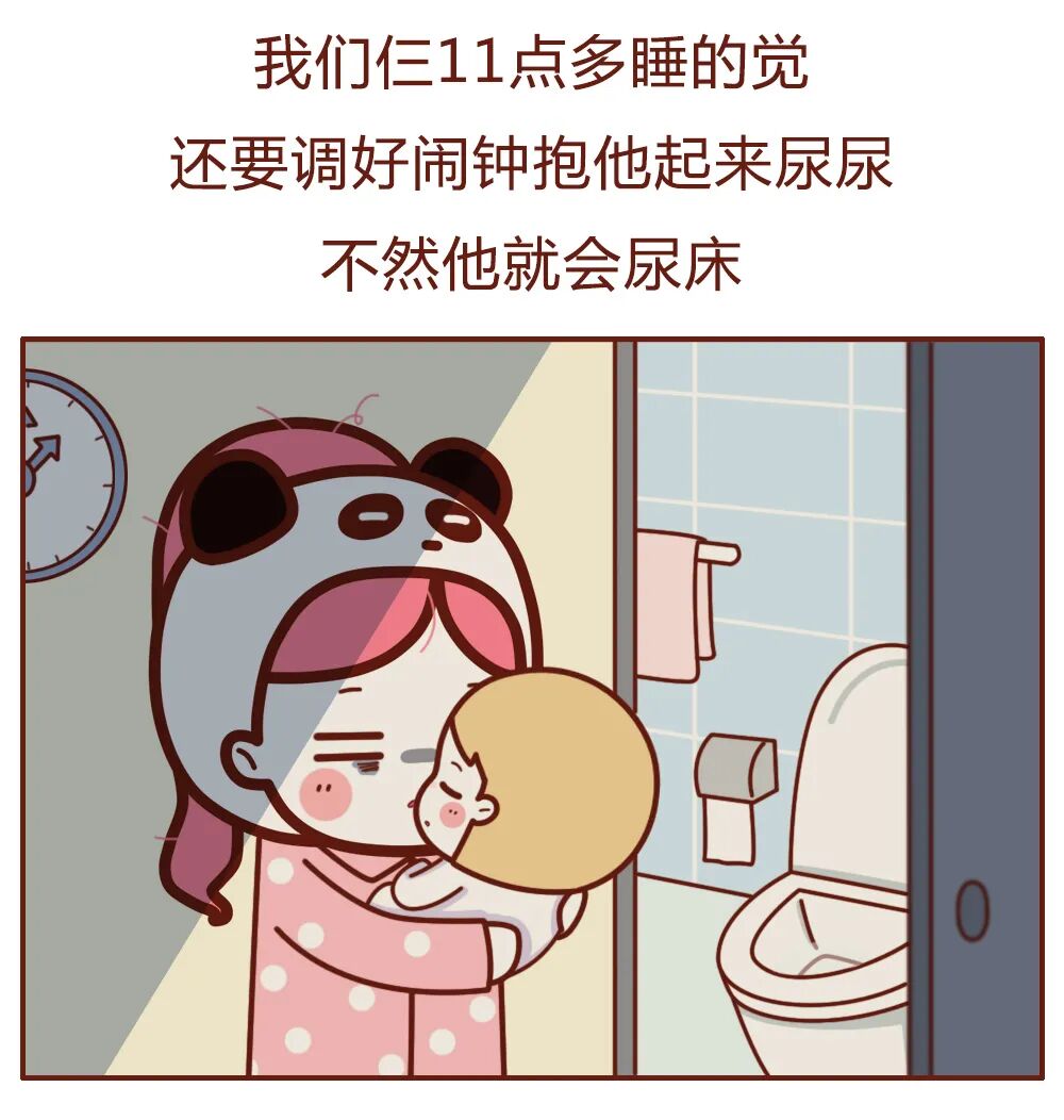 因為我們還要設鬧鐘,到點把他抱去尿尿,要不他就會尿床。