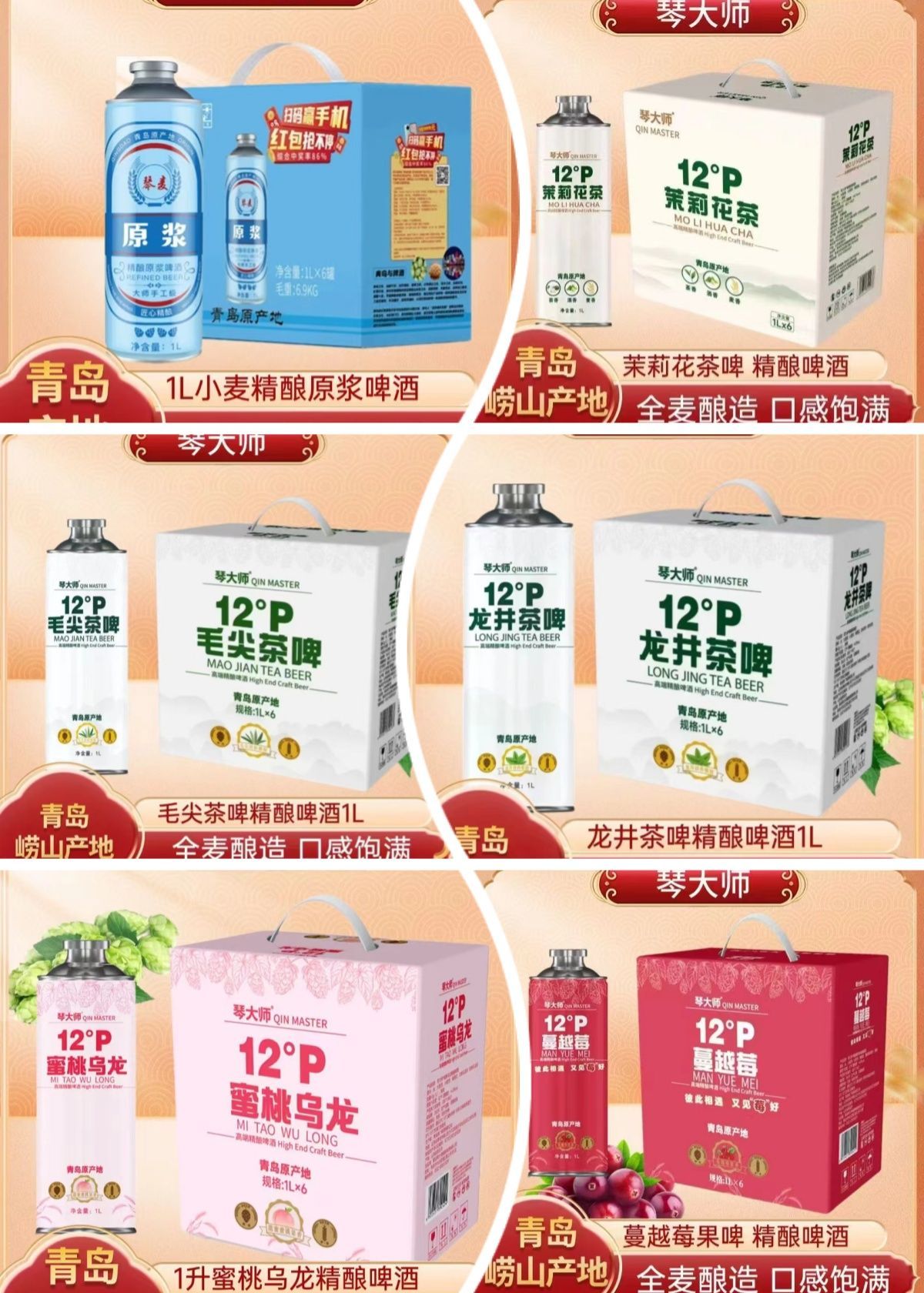 翻看電商平臺(tái),“酒很好喝值得購(gòu)買(mǎi),喝完了再來(lái)”“口感很好,啤酒麥香味十足”“已是第二次回購(gòu),很好喝”是用戶(hù)對(duì)琴大師的感受評(píng)價(jià)。近年爆火的中式茶啤系列,如龍井、毛尖、茉莉等口味原漿更將茶文化與精釀工藝結(jié)合,以“茶香三疊”的“神韻”俘獲年輕群體,高度契合當(dāng)下年輕人“左手奶茶右手酒”的生活追求。