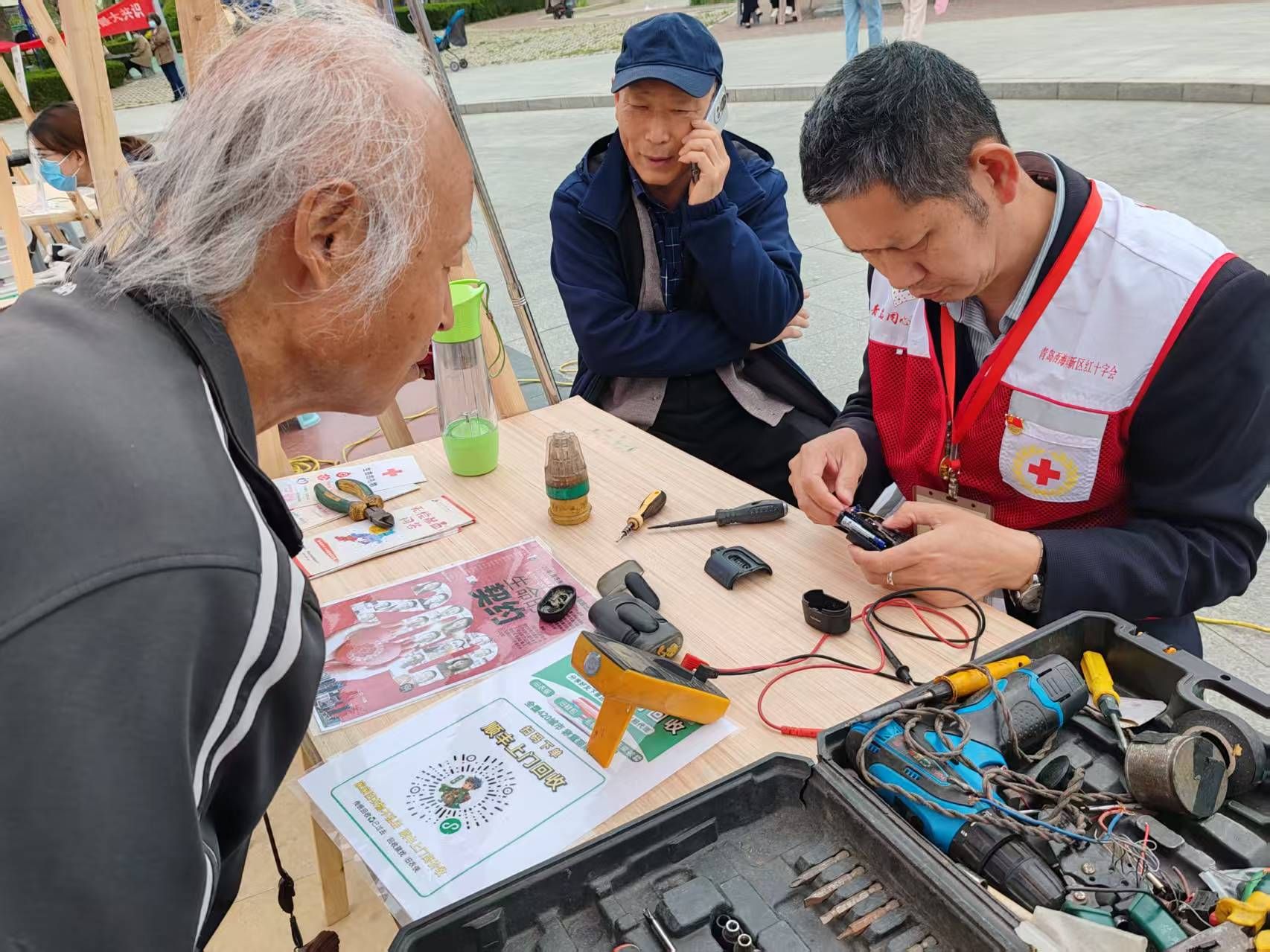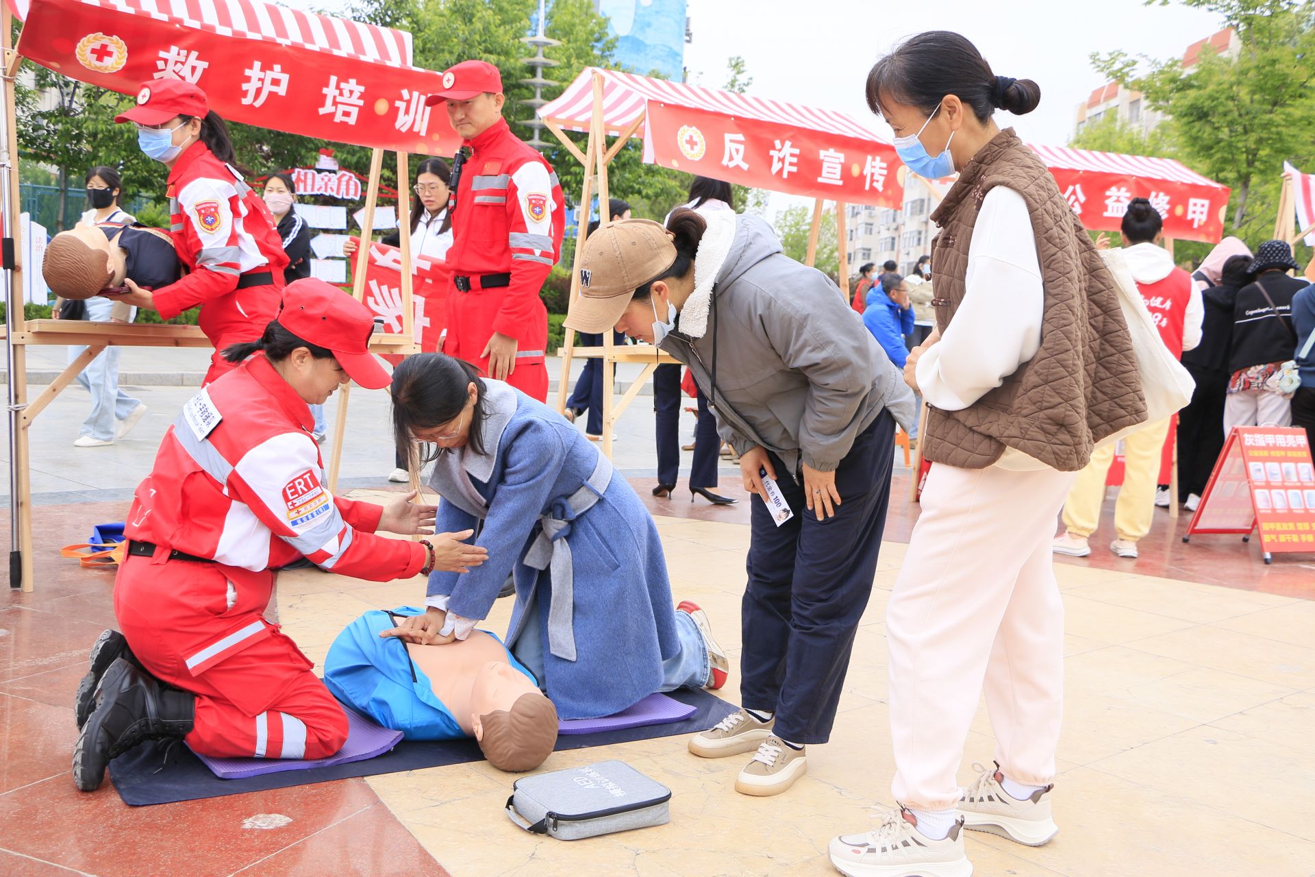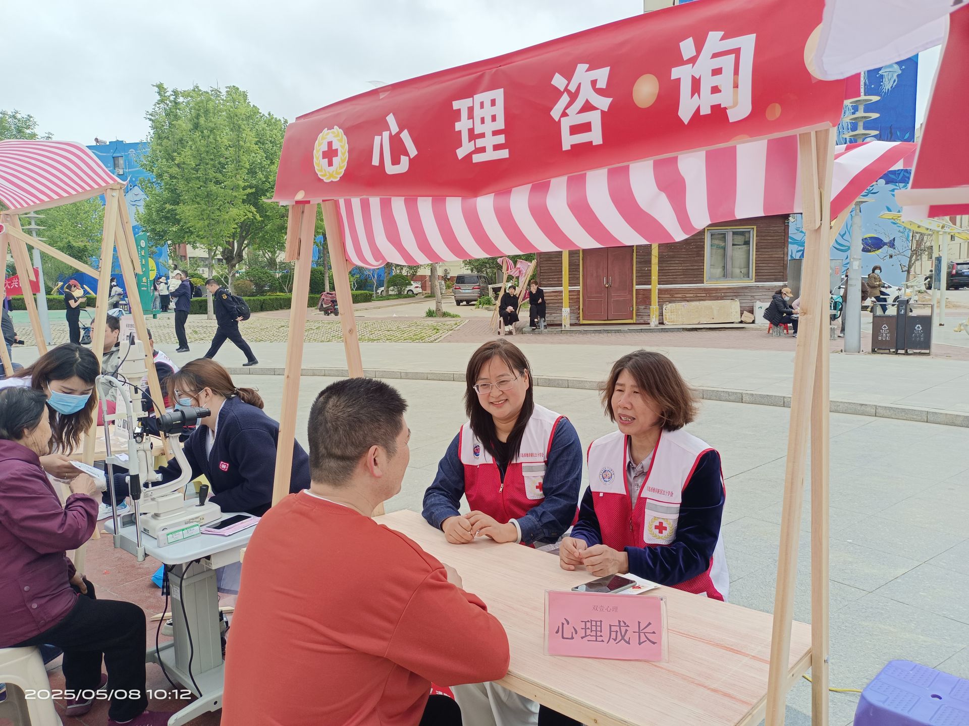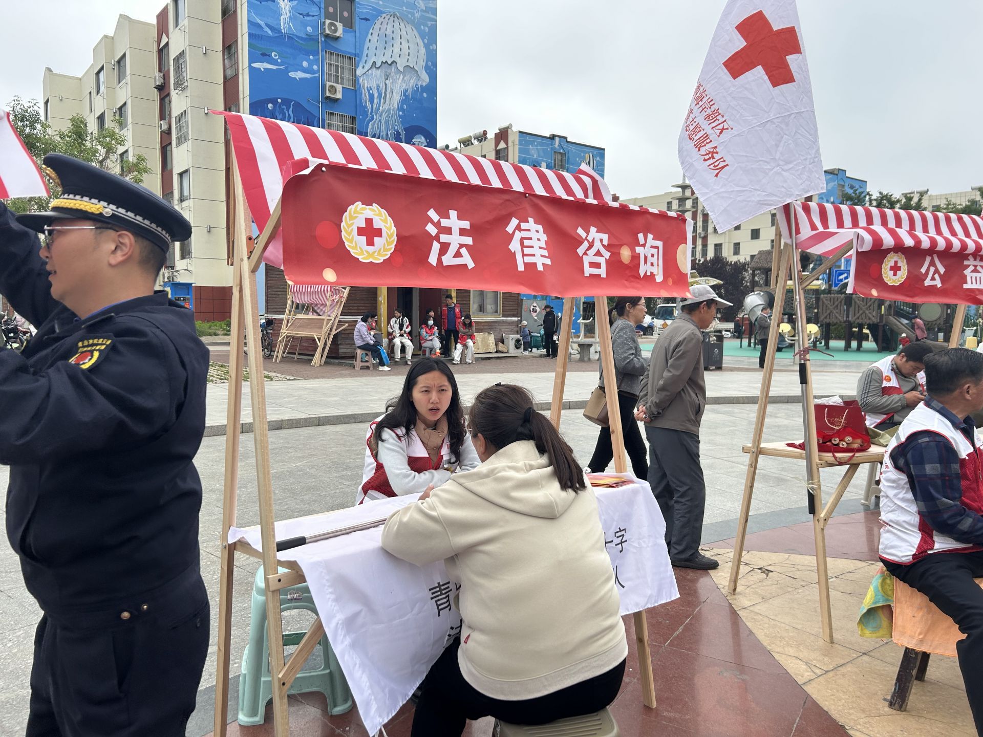 在啟動儀式上,志愿者們進行了宣誓,3支紅十字專業志愿服務隊和1所高校、2家醫院、2家銀行的紅十字志愿服務隊分別與2個社區簽訂結對協議,拉開了2025年度“紅十字志愿服務進村(社區)、進企業、進學校、進景區”主題活動的序幕。區紅十字會副會長、黨組成員于芳同志做了講話,隱珠街道人大工作委員會副主任周菲同志宣布“紅十字博愛周志愿服務進社區”公益集市開市。志愿者們在公益集市開展了救護培訓、理發,磨菜刀,修理小家電,三捐獻宣傳,心理咨詢,法律咨詢、口腔義診,書法、中醫推拿、反詐宣傳等十余個項目,服務群眾300余人次,深受群眾歡迎和好評。