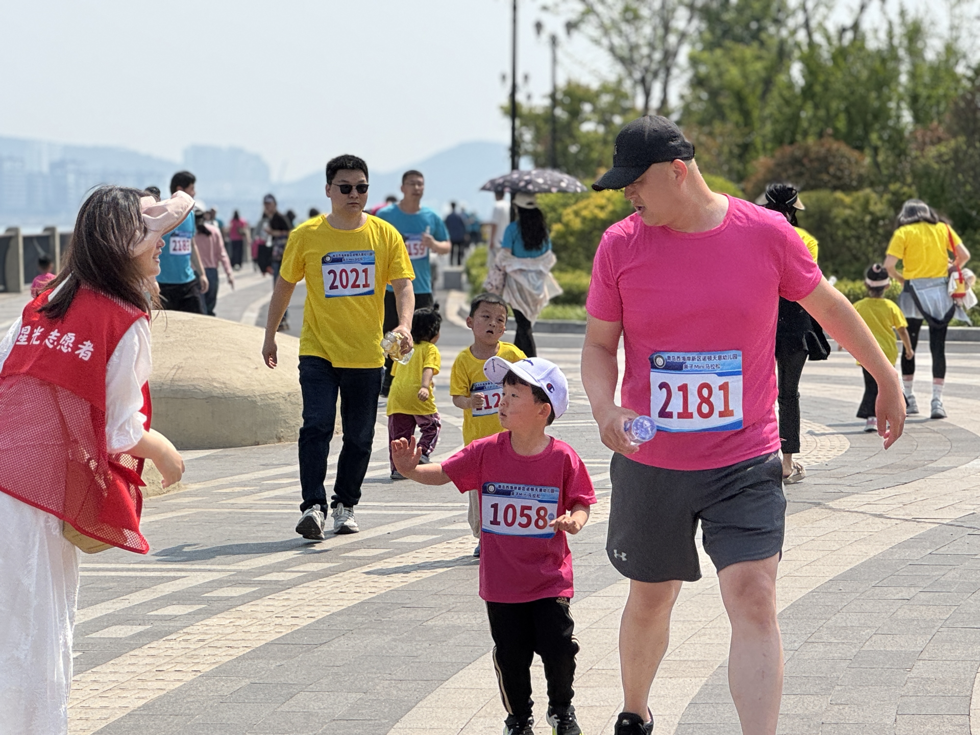 同行路上,歡聲笑語: 孩子們沿著風景如畫的環島路線,你追我趕,互相鼓勵。不同民族的孩子們并肩前行,共享陽光與新鮮空氣,歡聲笑語匯成一片。老師們和社區工作人員、各族志愿者全程陪伴,加油助威,營造了團結友愛、積極向上的集體氛圍。