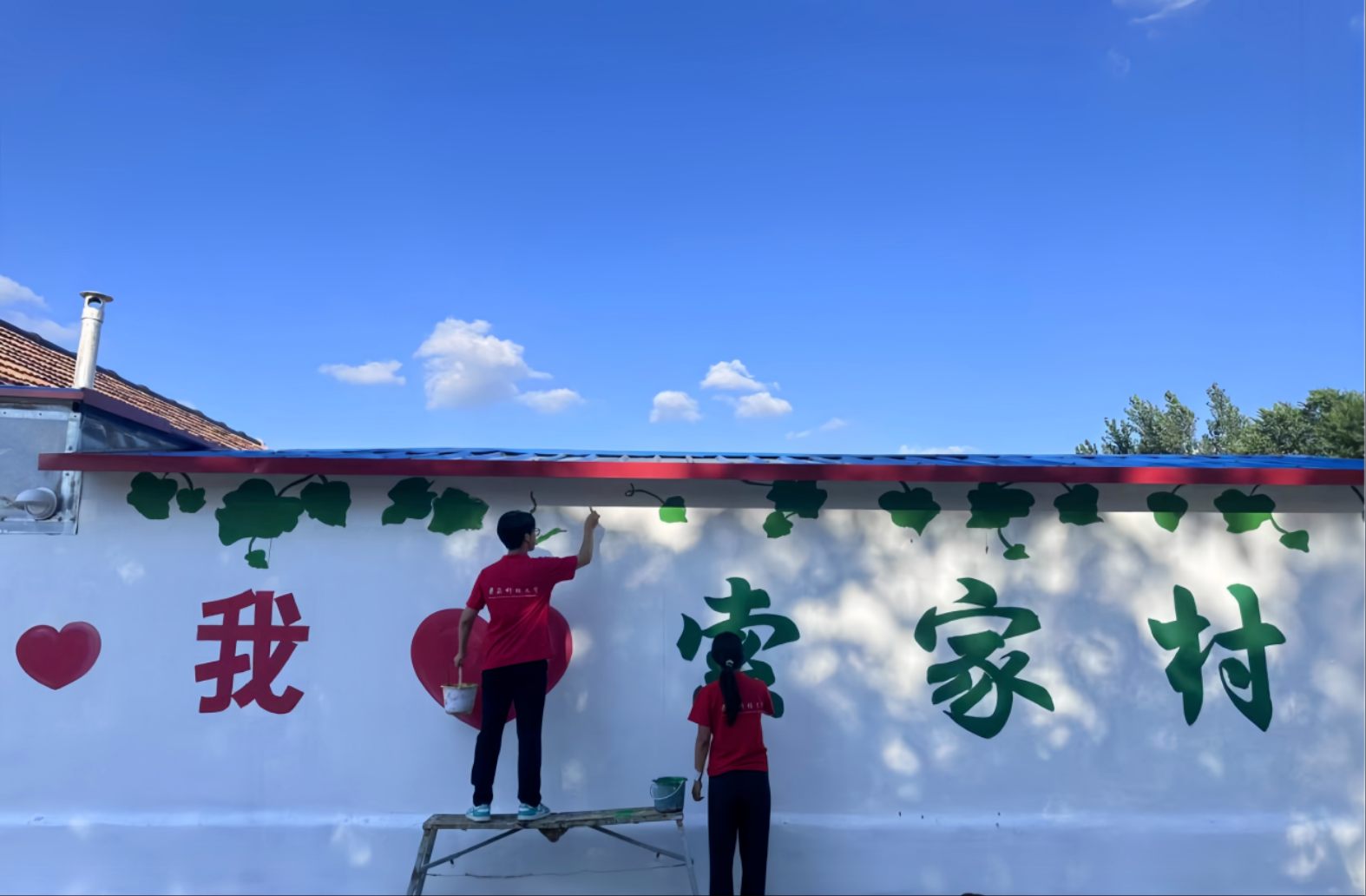 實踐隊來到密水街道索家村,拿起畫筆,以“綠色發展,鄉村振興”為主題,在墻面上揮灑創意。昔日單調的墻面漸漸“煥新”——田間的麥浪、孩童追逐的笑臉、象征夢想的翅膀與索家村特色面食產業等本地民俗元素交相輝映,一幅幅栩栩如生的壁畫讓村莊煥發新生機。“這些年輕人真是太有心了,把我們的村子畫得這么漂亮,看著就讓人心里舒坦!”路過的村民紛紛駐足贊嘆。