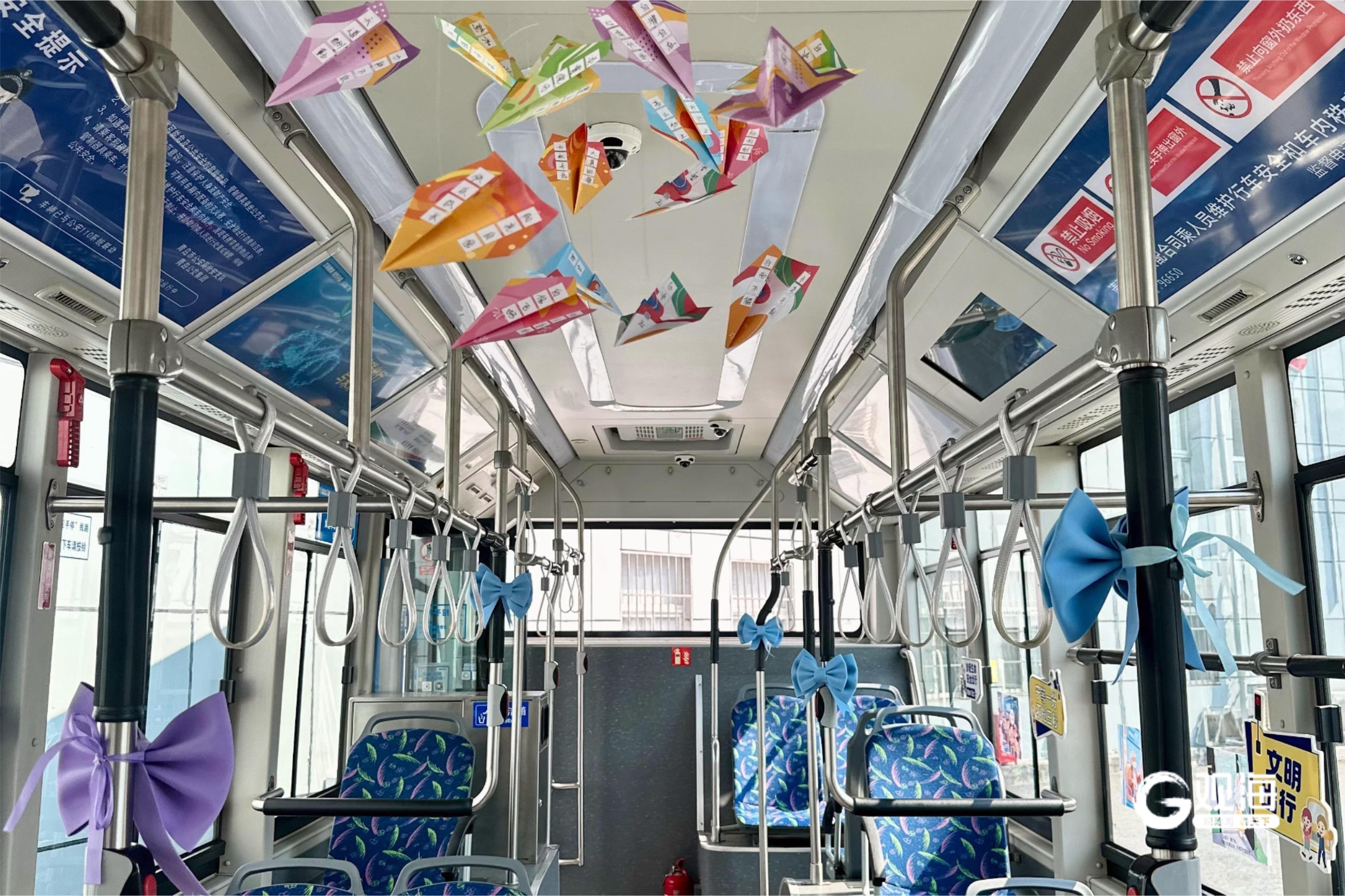 公司致力于打造沉浸式開學氛圍,在408路車廂上精心布置了“開學季主題車廂”,成為城市中一道流動的風景線。