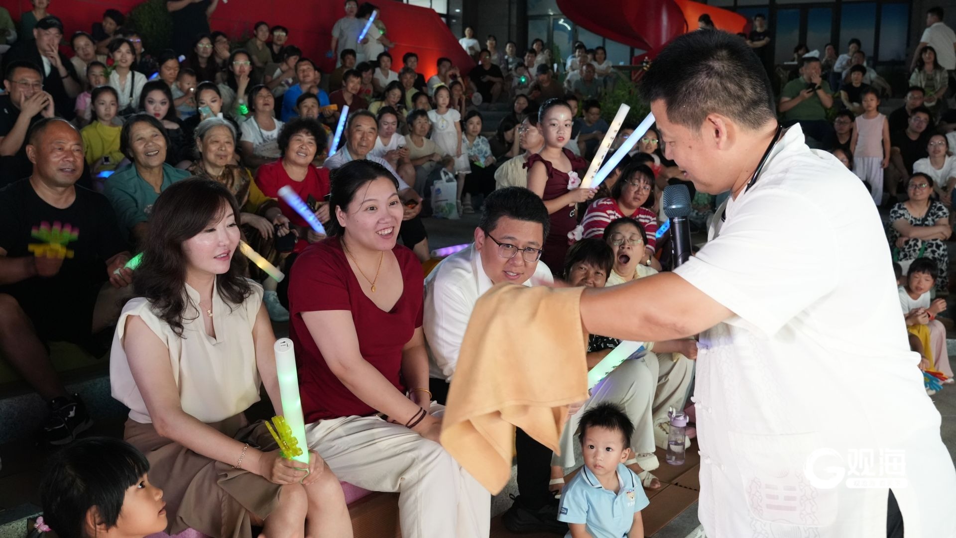 第一篇章“青春無盡夏”以沉浸式影像敘事開啟。大屏幕播放自6月底以來開展的“樂燃仲夏·青春正午”音樂季系列活動照片集錦,主持人深情回顧歷次活動精彩瞬間,并向廣大青年人才對活動的支持表示感謝。青島地鐵集團青年職工舞蹈團帶來情景劇舞蹈《與光同行》,以靈動舞姿演繹奮斗與陪伴的故事,引發觀眾強烈共鳴;區總工會選送的《魔幻時刻》通過互動魔術瞬間點燃現場氣氛,觀眾掌聲雷動;區婦聯古箏演奏《世界贈予我的》與獨唱《后來》以婉轉旋律觸動人心,現場不少青年輕聲跟唱,氛圍溫馨動人。
