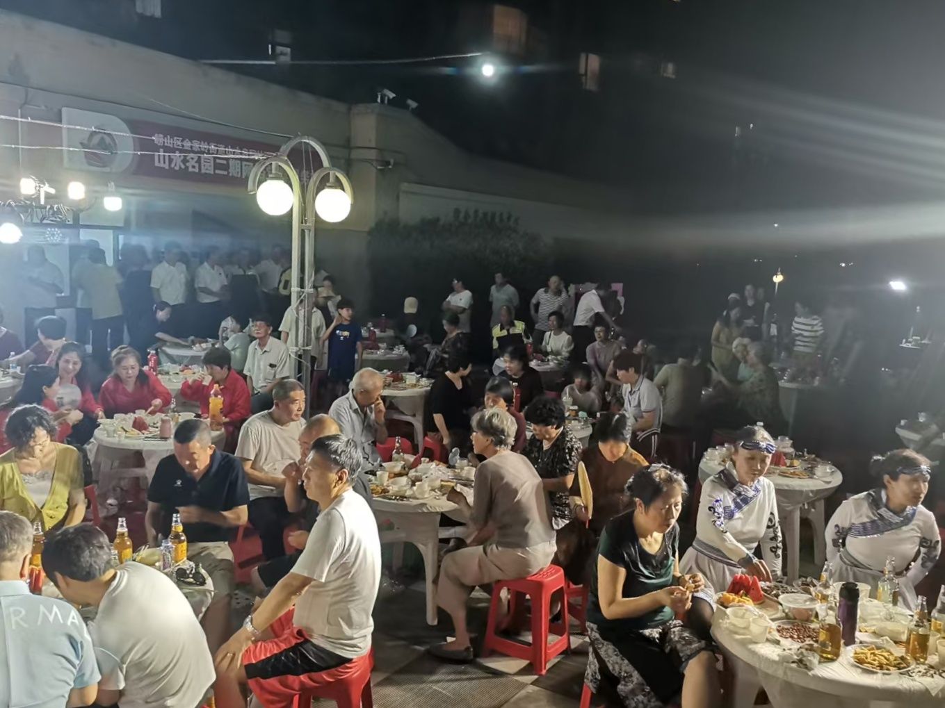 如果說演出和抽獎是 “熱鬧”,那最后的 “美味百家宴” 就是鄰居節的 “暖心王牌”—— 這背后,同樣離不開社區黨委的用心。前期,黨員志愿者提前統計居民拿手菜,幫行動不便的老人 “代帶菜品”;物業準備的桌椅、餐具,也是黨員和工作人員一起搬抬、擺放的。