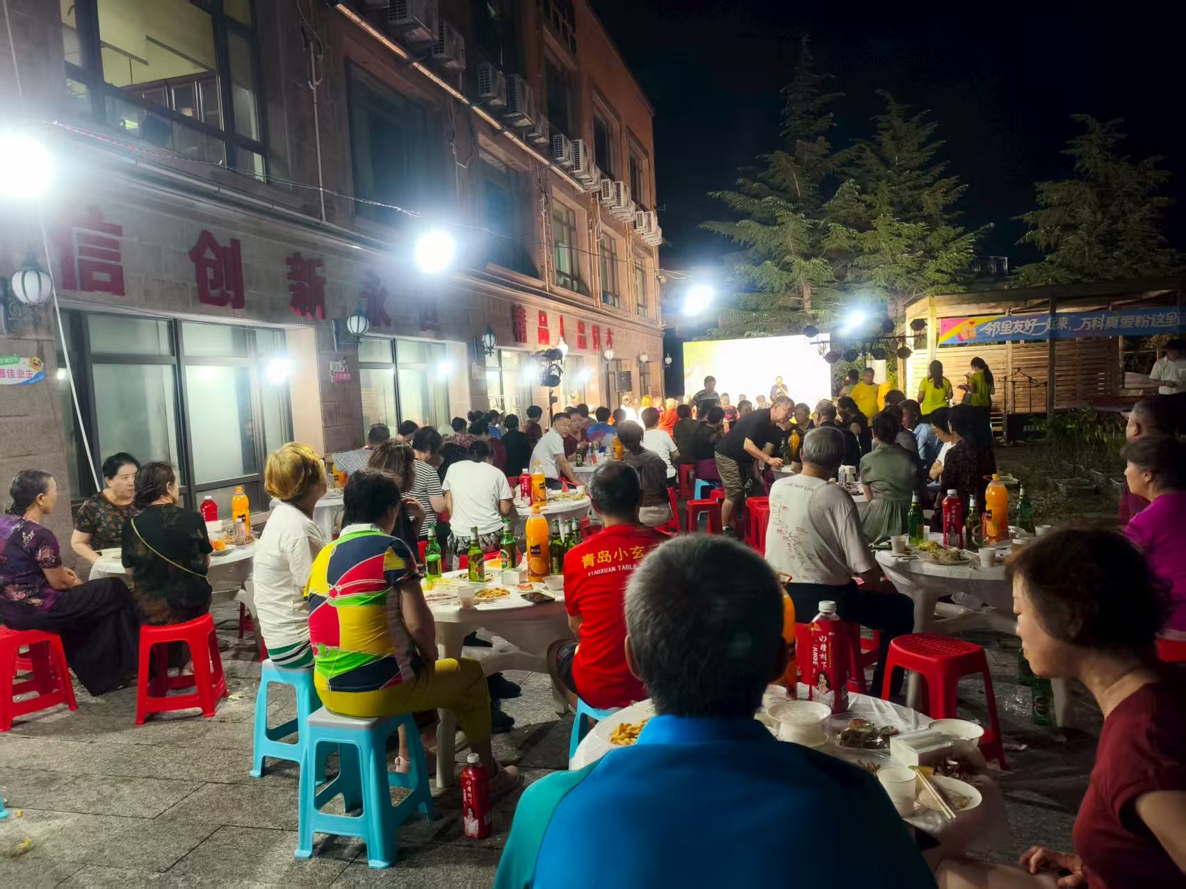 開宴時,黨員帶頭端上自家菜,大家圍著桌子坐,你嘗我一口菜,我問你一句 “調料咋放的”,原本只是點頭之交的鄰居,聊著聊著就說起 “周末一起遛彎”“下次約著買菜”。