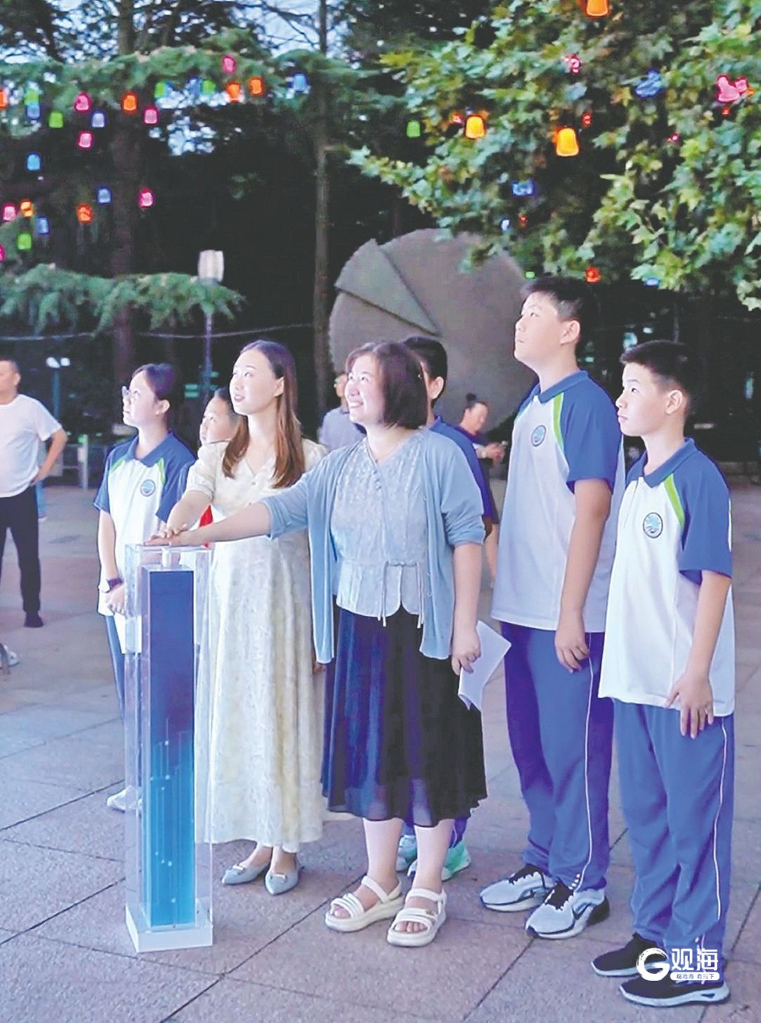 “5、4、3、2、1……啟動!”隨著學子與老師們共同摁下啟動鍵,在圍觀市民的齊聲高呼中,《海的女兒》燈組綻放奪目光華。現場,大家紛紛舉起手機、相機,記錄下這一美妙的瞬間。燈光亮起,深情未減。“祝老師們節日快樂!”青春而充滿力量的祝福聲在燈火輝煌中傳送。