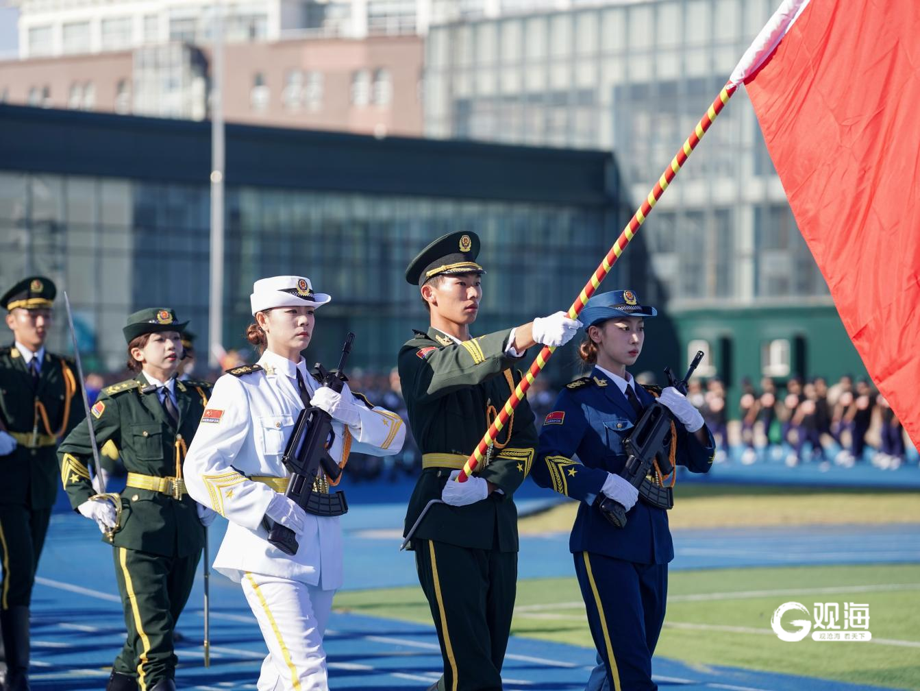 青島日報社/觀海新聞9月11日訊 沙場秋點兵,青春繪新篇。11日,青島城市學院2025級新生開學典禮暨軍訓分列式匯報展示在學校操場舉行。全體新生英姿勃發、步伐鏗鏘、斗志昂揚地接受檢閱,充分展現了入學以來的訓練成果和青春朝氣。