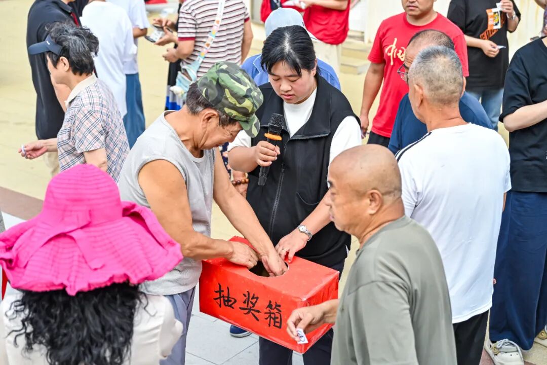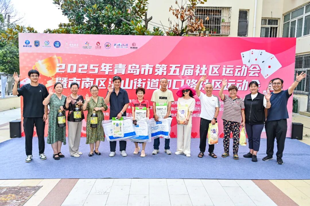 比賽尾聲,最令人期待的頒獎環節到來。青島小襖關愛社區服務有限公司李總走上臺,先后為幸運獎得主及冠亞季軍送上精心準備的獎品。未獲獎的選手也領到了參與獎,大家圍著獎品合影,定格歡樂瞬間。