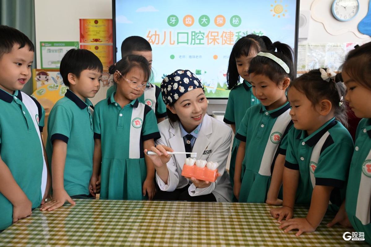 青島日報社/觀海新聞9月20日訊 9月20日是第37個“全國愛牙日”,今年的宣傳主題為“口腔健康 全身健康”。在“全國愛牙日”到來前夕,青島市即墨區皋虞路幼兒園開展“愛牙護牙 從小做起”的愛牙日系列主題活動,邀請口腔醫院的醫務人員,通過模型、圖片、互動練習、游戲等多種方式讓孩子們了解牙齒的構造,引導孩子從小養成愛護牙齒、保護口腔健康的良好習慣。(青島日報/觀海新聞記者 王濤 通訊員 張濤)
