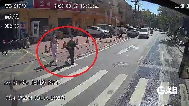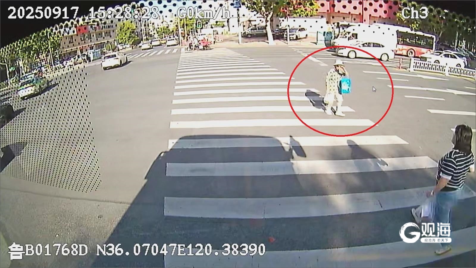 駕駛員柳斌禮讓斑馬線,老人連續(xù)三次揮手致謝