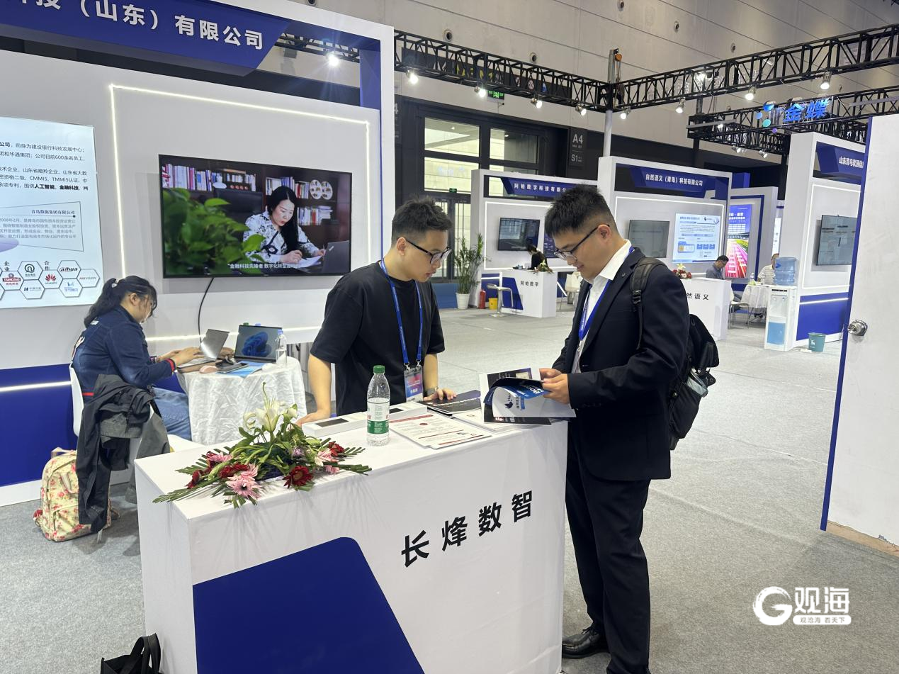 展會現場,長烽數智科技(山東)有限公司、山東青鳥軟通信息技術股份有限公司、自然語義(青島)科技有限公司、中科星圖智慧科技有限公司、阿帕數字科技有限公司、山東云管家數據科技有限公司6家企業通過實物展示、互動體驗、案例演示等多種形式,呈現了在人工智能、大數據、云計算、工業軟件等領域的前沿成果。
