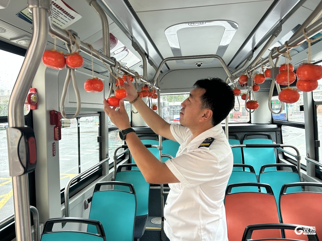 為打造這處“移動文化空間”,駕駛員王靈軍與總調度員溫奇劍共同發揮創意。他們精選應景元素:以柿子象征“事事如意”,用南瓜圖案呼應農耕文化,通過橘黃色的溫暖色調營造溫馨氛圍。溫奇劍表示:“我們希望乘客在短途出行中也能感受到節日儀式感,讓公交成為傳遞城市溫情的紐帶。”