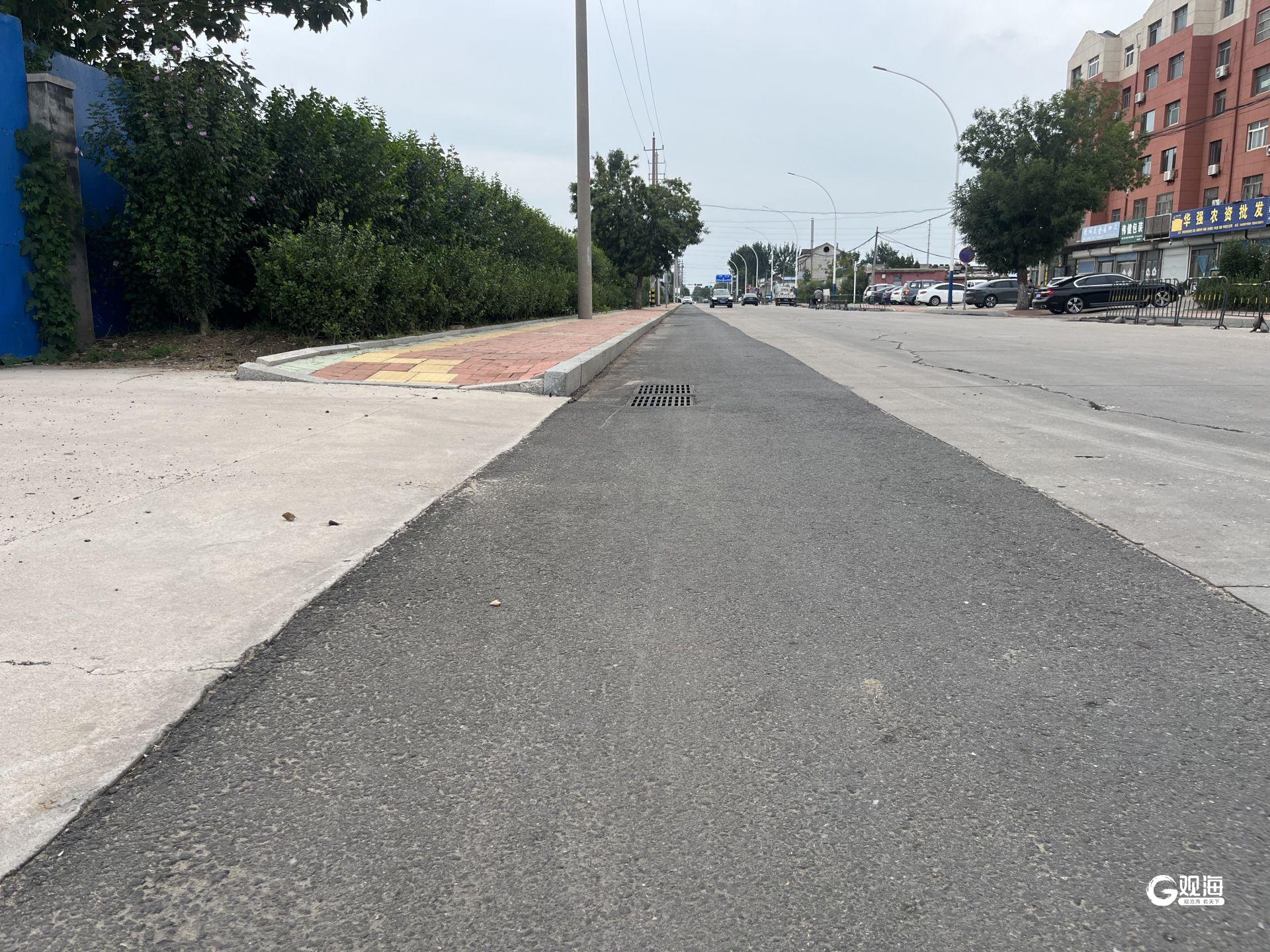 近日,記者現(xiàn)場探訪看到,威海西路(深圳北路-青島路)南側(cè)的挖開路面鋪設(shè)著瀝青,恢復(fù)如常,但北側(cè)的施工路面卻未被填平,和道路存在近6厘米的高差,施工單位放置的一排護(hù)欄有不少倒伏在地上。記者注意到,道路北側(cè)的沿街商戶地勢較高,又主營物流、汽修、再生資源回收,車輛進(jìn)出需求大,商家在進(jìn)出口處鋪設(shè)著鐵板、磚石、防滑草墊等。