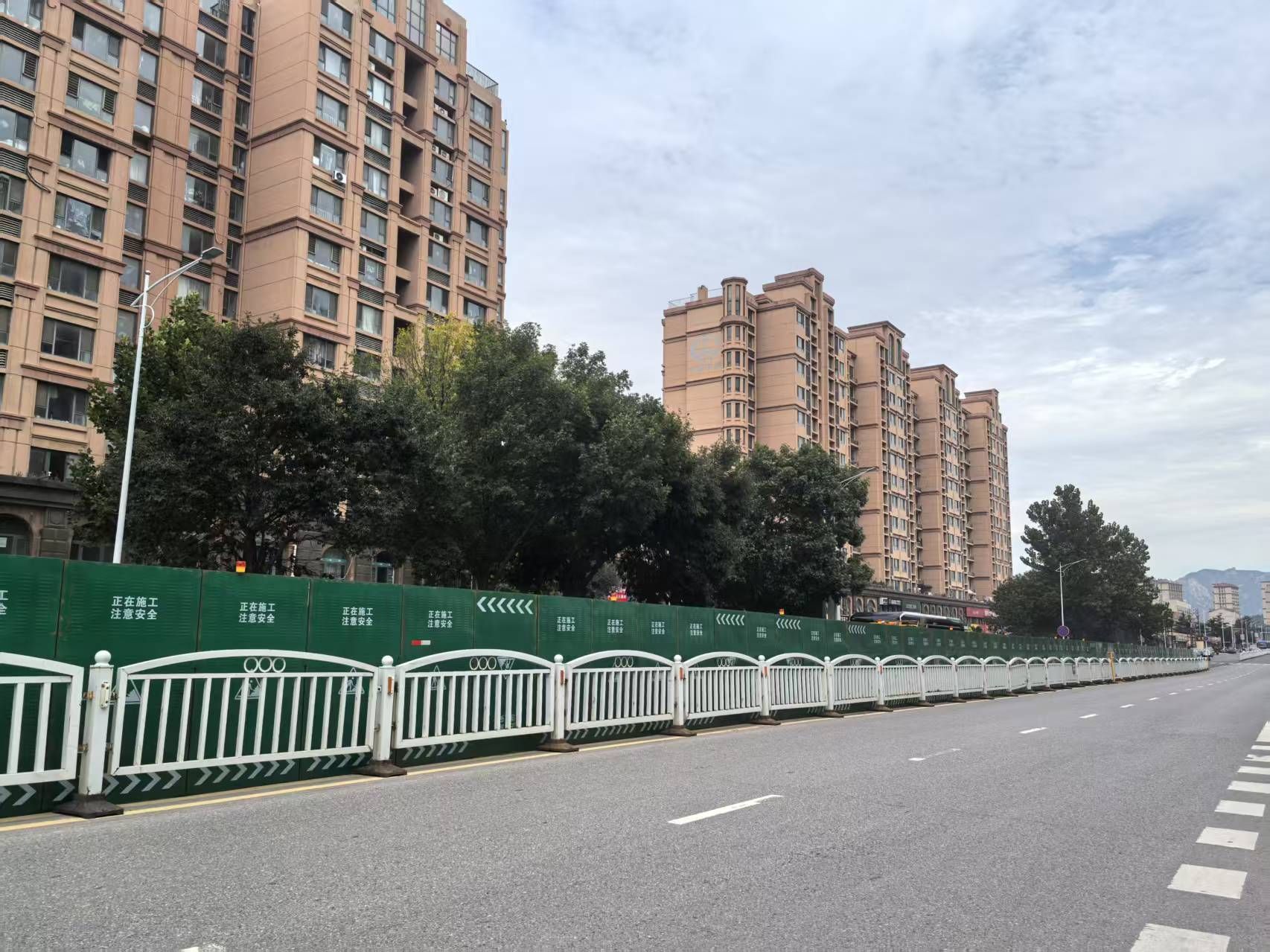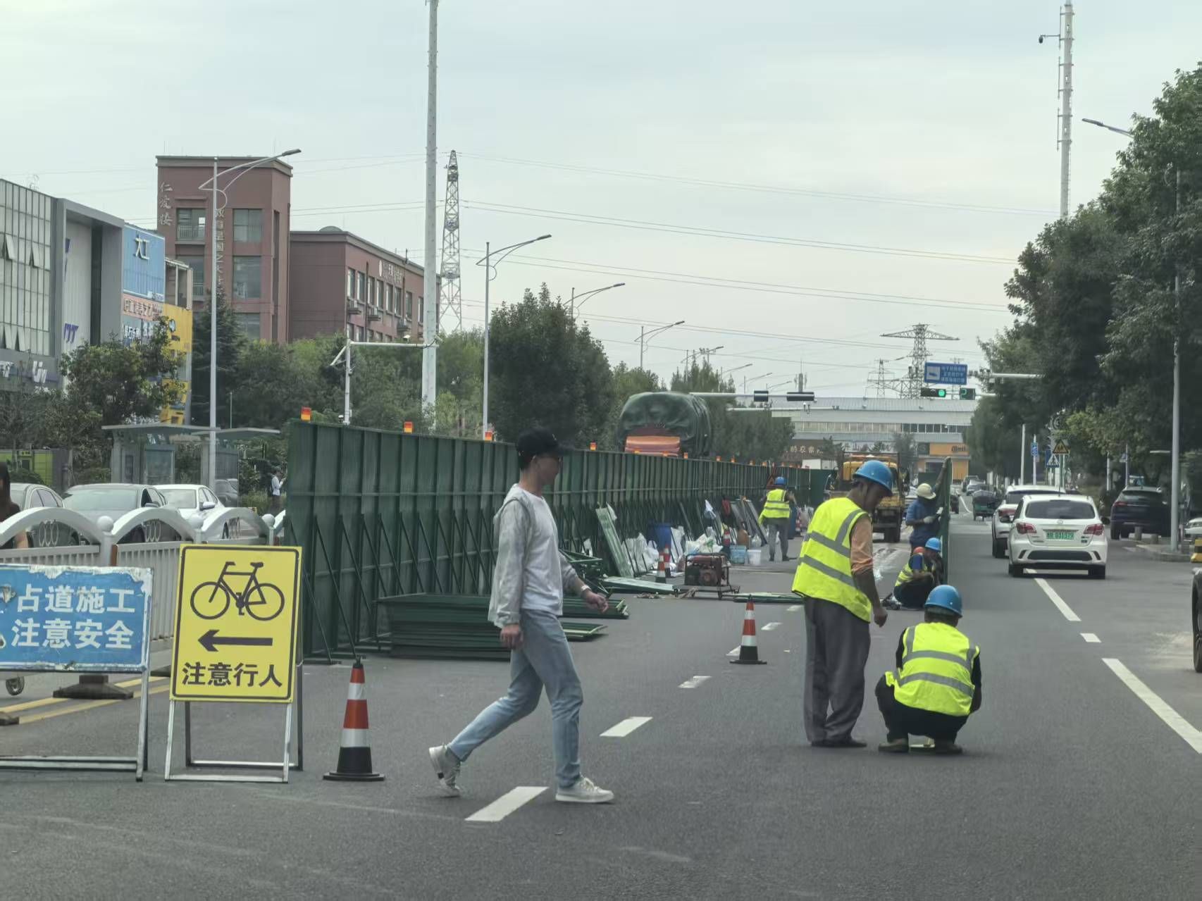 早晚高峰時段(5:00-9:00,15:30-21:00)封閉北半幅4m車行道,圍擋北側保留一條東向西車道,保證雙向四車道通行。機動車東向西通過圍擋兩側通行;西向東沿南側路面雙車道通行。非機動車按交通標志指示牌沿道路兩側商鋪或人行道鋪裝避讓行人通行。公交車東向西沿圍擋北側車道通行;西向東沿最南側車道通行。