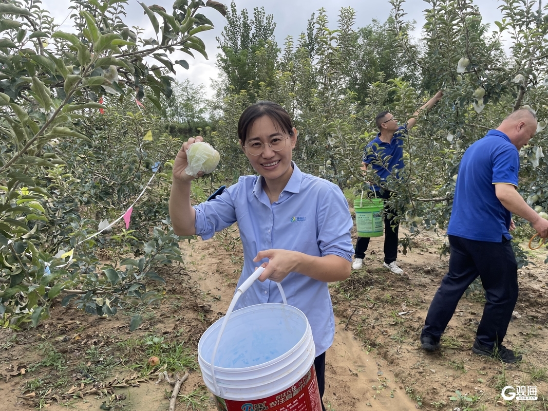 當天早上7點30分左右,大家準時趕到王家小莊村的蘋果園。一進園子,幾人也沒多寒暄,挽起袖子就開始分工。矮處的果子,趙炳娥、丁仲鳳蹲在地上摘;高處的,就由王金軍、韓新軍和高峰緒負責。大家伙摘的時候都特別小心,一手托著蘋果底部,一手輕輕轉果柄,就怕碰破了果皮。老兩口看著急,撐著腰想過來遞個筐,立馬被趙炳娥攔住了。“大叔大姨,你們找個樹蔭坐著就行!” 王金軍也笑著把他倆往旁邊的石凳上引,“這點活我們能干麻利,保證給你們摘得干干凈凈!”