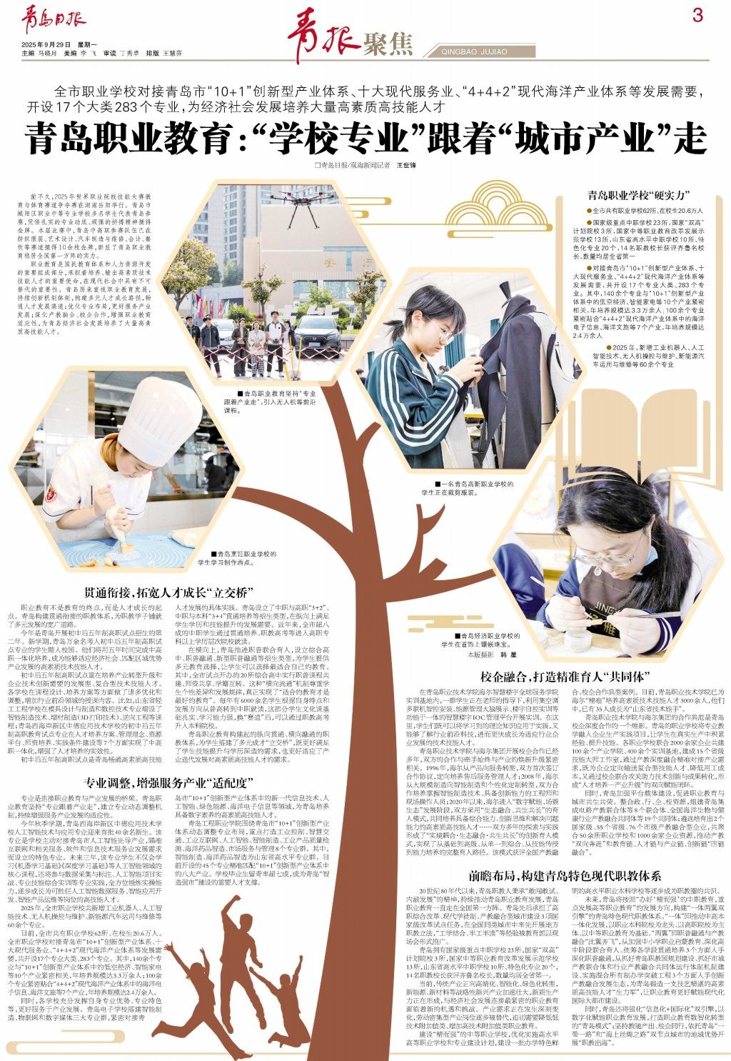 青島職業教育構建起的縱向貫通、橫向融通的職教體系,為學生搭建了多元成才“立交橋”,既更好滿足了學生技能提升與學歷深造的需求,也更好適應了產業迭代發展對高素質高技能人才的需求。