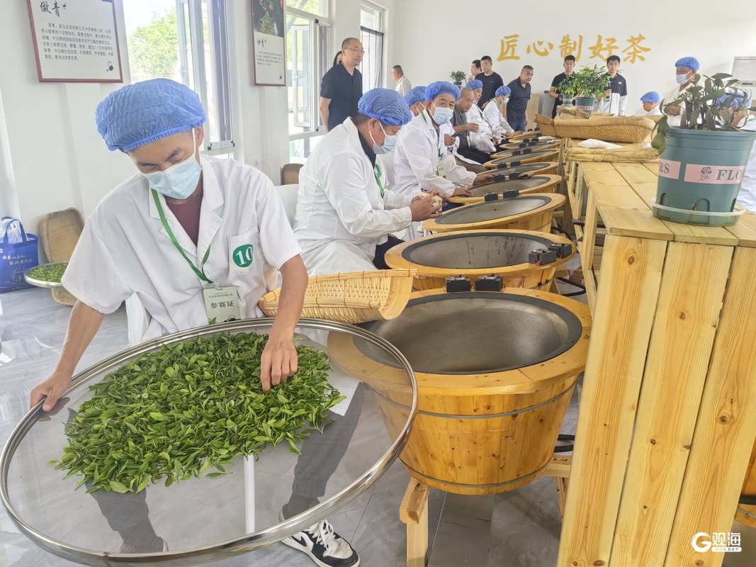 青島日報社/觀海新聞9月29日訊 殺青、揉捻、干燥……參賽選手將茶葉鮮葉原料倒入光亮的鐵鍋中,雙手在鍋中靈活翻攪、反復揉搓,90分鐘內完成綠茶炒制的全流程工藝。原本帶有青草味的鮮葉褪去青澀,陣陣清新的茶香在空氣中彌漫。9月29日,由青島市農業農村局、青島市人力資源和社會保障局聯合主辦的2025年青島市綠茶炒制大賽在青島西海岸新區海青鎮火熱開賽。來自全市各產茶區的30名炒茶能手齊聚一堂,以技會友、以賽促產,生動展現青島茶人精湛的制茶技藝和深厚的產業底蘊。