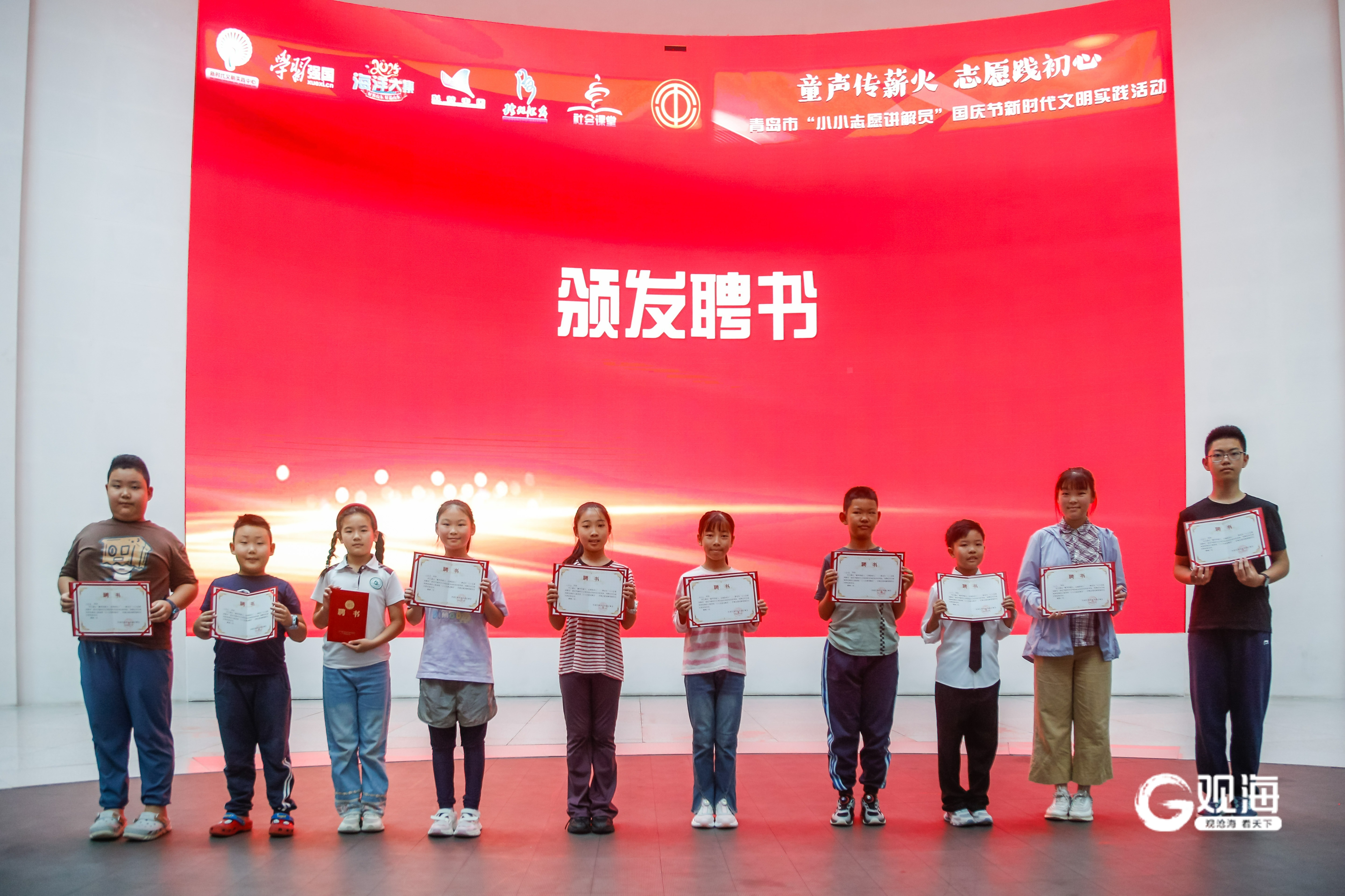 培訓(xùn)尾聲的實(shí)操考核環(huán)節(jié),學(xué)生們結(jié)合所學(xué)走上“模擬講解崗”,圍繞場(chǎng)館內(nèi)容開(kāi)展試講,在一對(duì)一指導(dǎo)中打磨細(xì)節(jié)。最終,近70名學(xué)生全部順利通過(guò)考核,準(zhǔn)“小小志愿講解員”現(xiàn)場(chǎng)“轉(zhuǎn)正”,上臺(tái)領(lǐng)取《聘書(shū)》。珠海路街道初心宣講團(tuán)“小小志愿講解員”隊(duì)伍正式成立,孩子們成為首批宣講員,為市南區(qū)新時(shí)代文明實(shí)踐宣講工作注入了“強(qiáng)國(guó)復(fù)興有我”的少年力量。