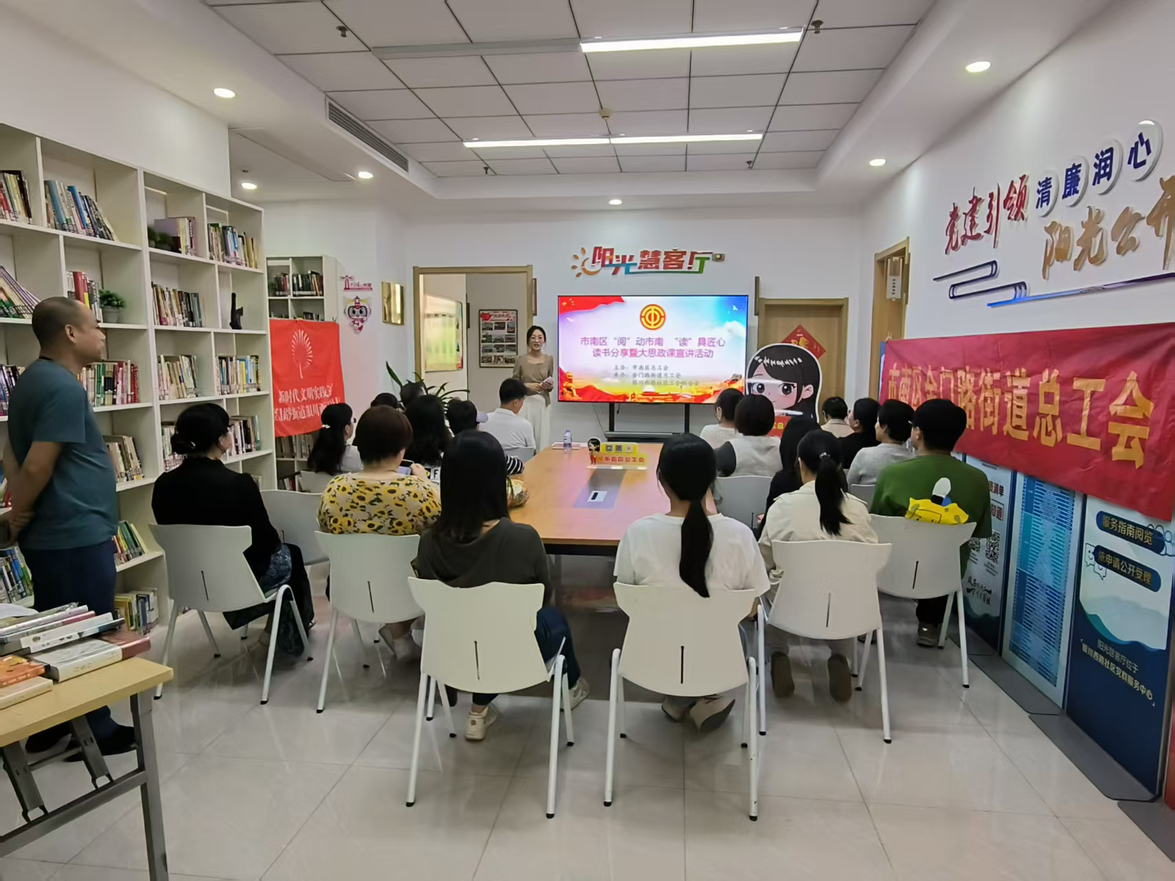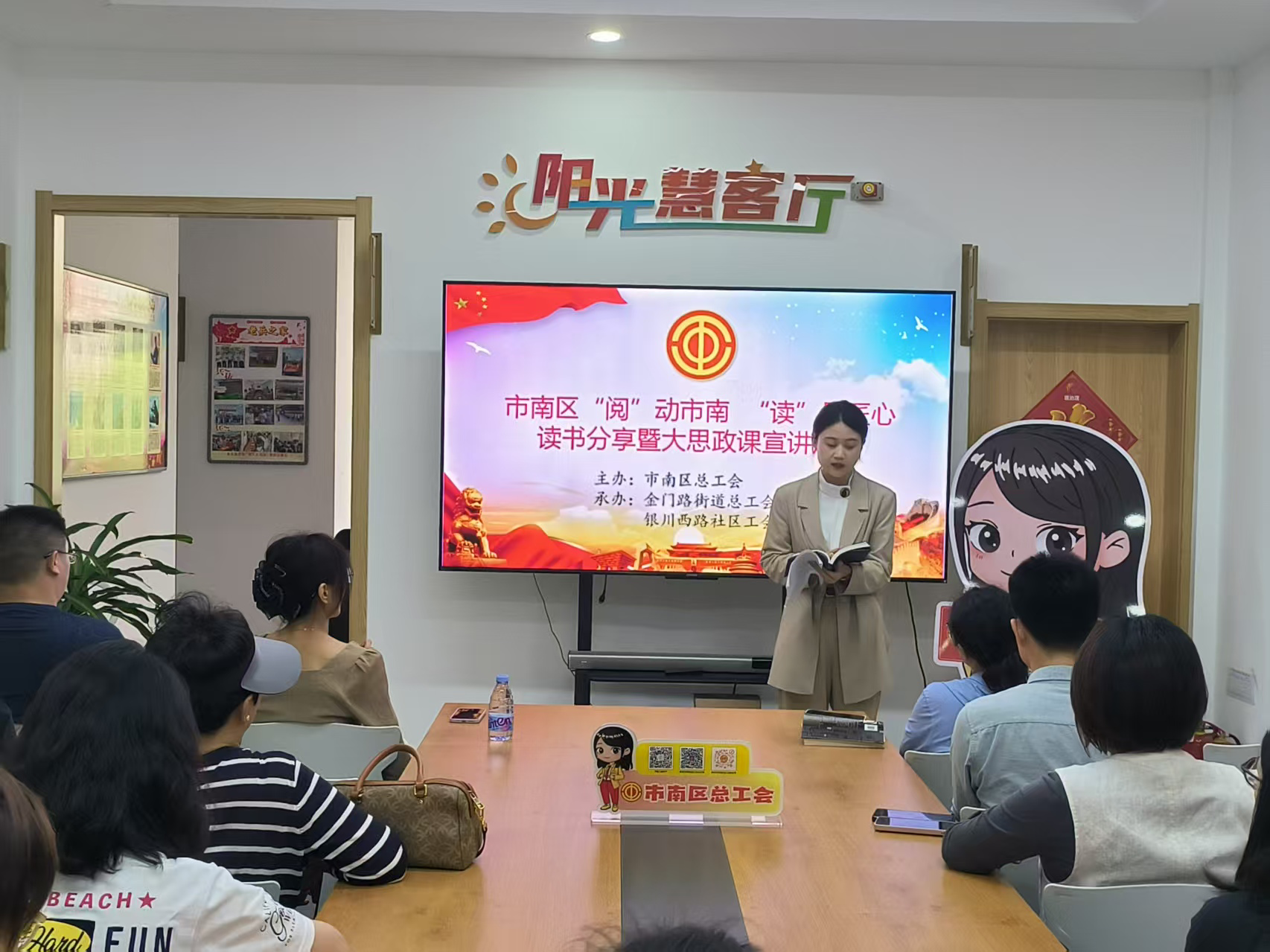 "一起來讀書!"這不僅是一句口號,更成為了金門路街道職工們近日共同參與的一場精神盛宴的真實寫照。為深化職工思想引領,打造書香工會,市南區總工會聯合金門路街道總工會成功舉辦"‘閱’動市南 ‘讀’具匠心"讀書分享暨市南區大思政課宣講活動,旨在通過閱讀的力量,讓先進思想與工匠精神在職工心中同頻共振,匯聚起奮進新征程的磅礴力量。活動吸引了轄區內的30余名基層職工、勞模工匠參與。