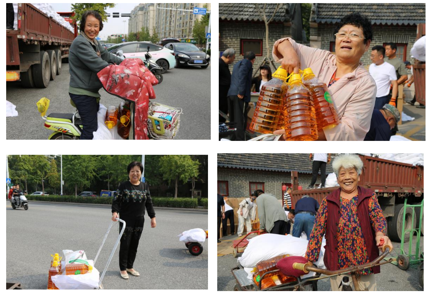 活動(dòng)當(dāng)天,小寨子社區(qū)村民居、新時(shí)代文明實(shí)踐廣場兩處分發(fā)點(diǎn)熱鬧非凡,社區(qū)工作人員早早來到分發(fā)點(diǎn),提前規(guī)劃流程、精心布置場地,有序組織居民排隊(duì)登記、領(lǐng)取福利。忙而不亂的場景里,滿是鄰里間的親切與社區(qū)的溫情,讓福利分發(fā)成了一場溫暖的鄰里互動(dòng)?,F(xiàn)場洋溢著歡聲笑語,居民們臉上都掛著幸福的笑容。除了每人都能領(lǐng)到的現(xiàn)金福利、自家農(nóng)場產(chǎn)出的面粉和優(yōu)質(zhì)花生油外,社區(qū)還特別關(guān)愛老年群體,為80歲以上長者額外準(zhǔn)備了包括鲅魚、海產(chǎn)品、大面子禮盒、掛面、小米、牛奶在內(nèi)的豐厚禮品,90周歲以上的老人們更是喜添一份精美月餅。這份細(xì)致入微的差異化福利,充分體現(xiàn)了社區(qū)尊老敬老的傳統(tǒng)美德。