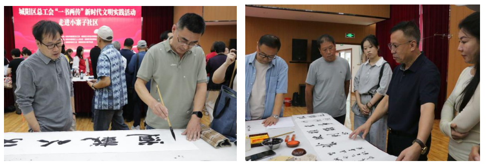筆墨飄香迎雙節,家風傳承暖人心。為深入貫徹落實黨中央關于社會主義文化建設的戰略部署,引導社區居民涵養良好家風,提升文明素養;同時迎接即將到來的國慶節與中秋節,弘揚中華優秀傳統文化,營造喜慶祥和、積極向上的社區文化氛圍,為構建和諧社區、創建文明家庭注入文化動力。9月30日,城陽區總工會在小寨子社區成功舉辦了“一書兩傳”書法創作惠民、書藝交流活動。本次活動由城陽區總工會、城陽區文學藝術界聯合會主辦,城陽區工人文化宮、城陽區書法家協會承辦,城陽街道總工會、城陽街道小寨子社區協辦,各方通力合作,以筆墨為媒介,為社區居民帶來一場文化盛宴。