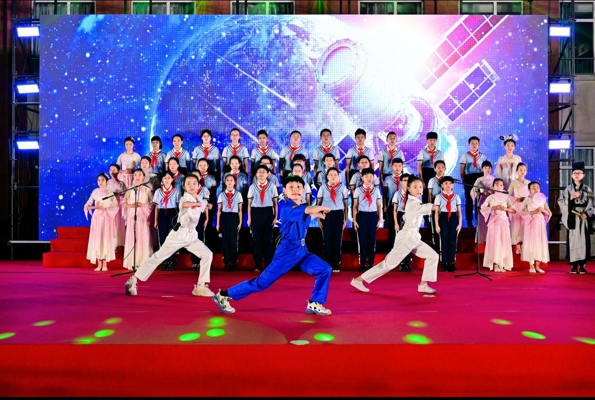 晚會在科技感滿滿的無人機編隊表演中拉開了序幕,器樂表演《我愛你中國》《浮光》奏響愛國深情,啦啦操《星穗閃躍》展現(xiàn)少年活力。音詩舞《詩月流芳,情滿中華》以經(jīng)典詩句與柔美舞姿,傳遞中華傳統(tǒng)文化韻味,將篇章推向高潮。在“知識互動問答”環(huán)節(jié),同學(xué)們踴躍搶答,在歡樂中傳承傳統(tǒng)文化知識。