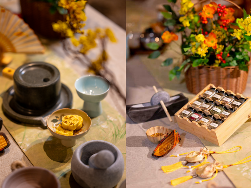 活動期間,民宿將于四樓露臺設置賞月專席,賓客可在此品嘗限定“賞月桂花餐”,搭配桂花主題下午茶及特色菜品,如“金桂浮雪套餐”“桂香九宮格”、桂花蜜藕、桂花糖醋小排等,在桂香彌漫中仰望圓月、盡享愜意時光。民宿房間內亦布置桂花香薰與裝飾,工作人員佩戴桂花胸針,營造沉浸式秋意氛圍。
