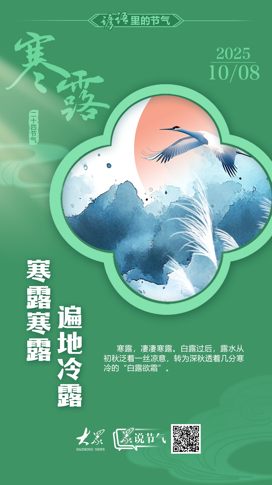時(shí)至寒露,歲在深秋,寒露是秋季的第五個(gè)節(jié)氣,此時(shí)露氣寒冷,萬物漸蕭,天氣由涼轉(zhuǎn)寒,晝夜溫差增大。