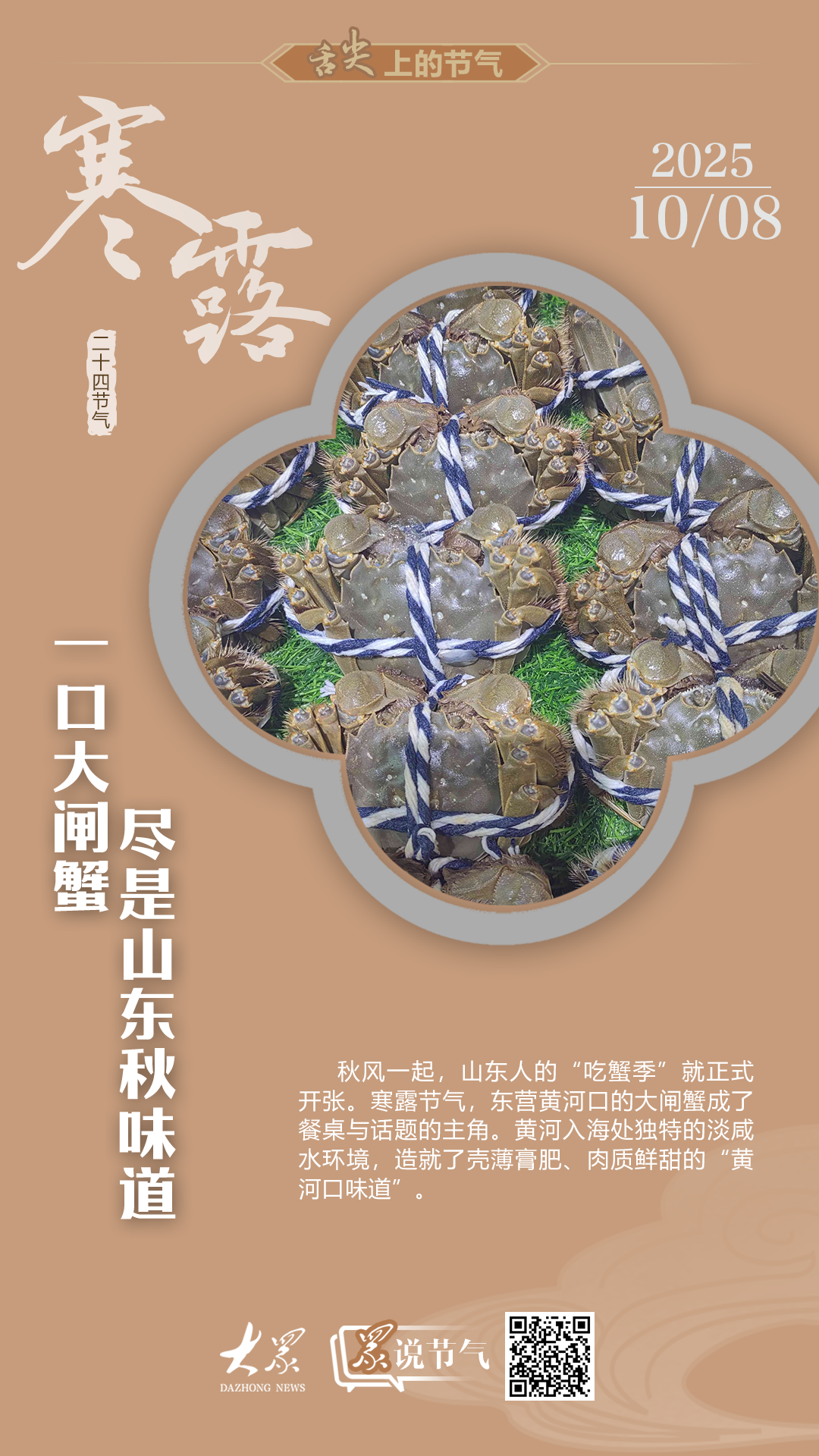 秋風(fēng)一起,山東人的“吃蟹季”就正式開張。在寒露這個(gè)節(jié)氣,東營黃河口的大閘蟹成了餐桌與話題的主角。黃河入海處獨(dú)特的淡咸水環(huán)境,造就了殼薄膏肥、肉質(zhì)鮮甜的“黃河口味道”,也讓這里的大閘蟹從地方特產(chǎn)走向了區(qū)域品牌。