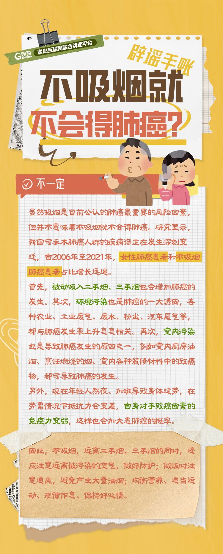 辟謠手賬 | 不吸煙就不會得肺癌? 2025-09-08 15:15 青島互聯(lián)網(wǎng)聯(lián)合辟謠平臺 0 策劃:榮瀟 設計:遲玉倩 觀海創(chuàng)意+出品 責任編輯:榮瀟 (作者:榮瀟 遲玉倩)