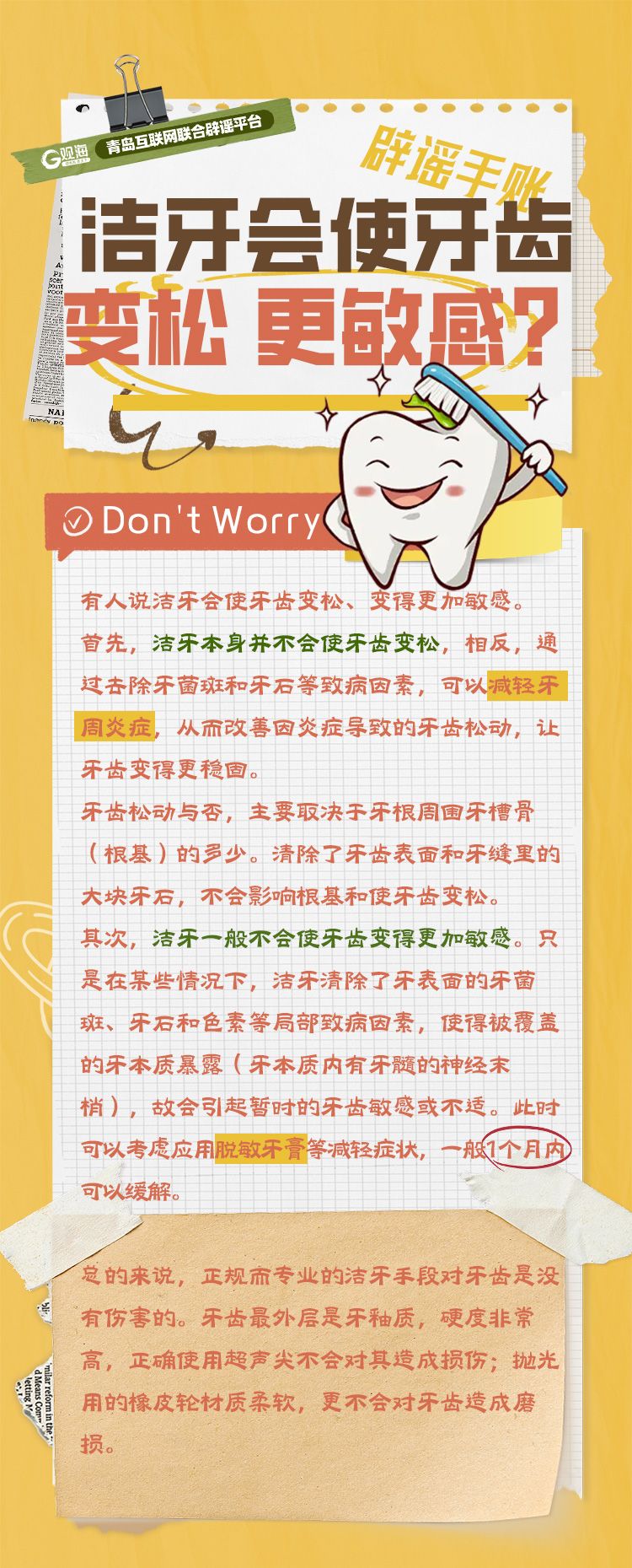 辟謠手賬 | 潔牙會使牙齒變松,更敏感?