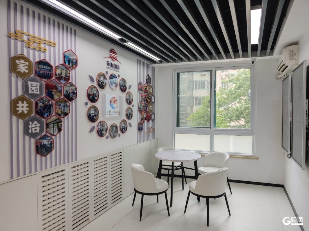 市南區委黨史研究中心將辛家莊村史記憶館展陳區域分為辛氏往事、歷史變遷、今昔對比、活動風采四部分。整合社區政務服務,將知“辛”小霞黨代表工作室融入辛家莊村史記憶館。結合村史館文化氛圍,設置“悅享咖啡吧”,用氤氳的咖啡香串聯起紅色記憶與市井溫情。倚墻而立的“清風悅讀”書柜,陳列著《青島市市南區志》《本色 青島黨史人物清廉故事》等地方史料。微觀史料與宏觀歷史的呼應,讓每一位前來參觀的居民,都能在知識的海洋中,感受辛家莊地域文化溫度。