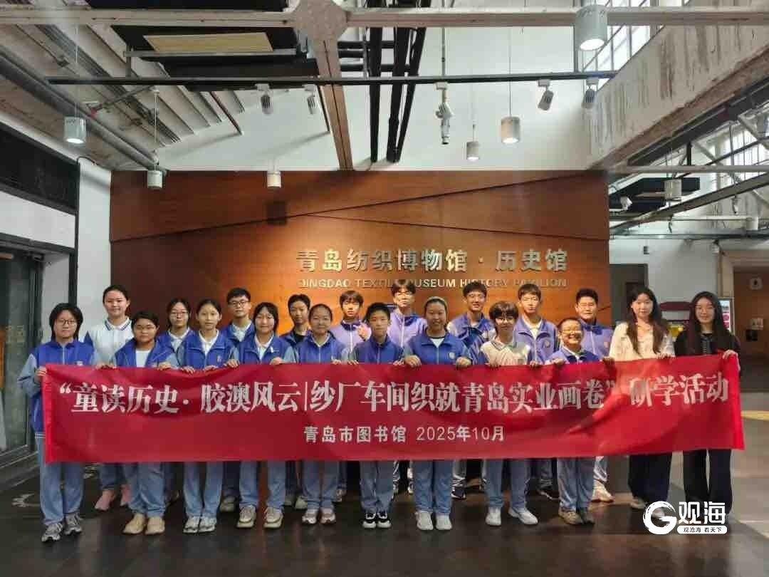 青島日報社/觀海新聞10月11日訊 近日,青島市圖書館與青島市教科院附中(青島三十七中)館校合作教聯體開展“童讀歷史·膠澳風云:紗廠車間織就青島實業畫卷”研學活動,館員老師和學校老師共同帶領學生走進青島紡織博物館,將中國近代史課堂延伸至真實的工業場景中。