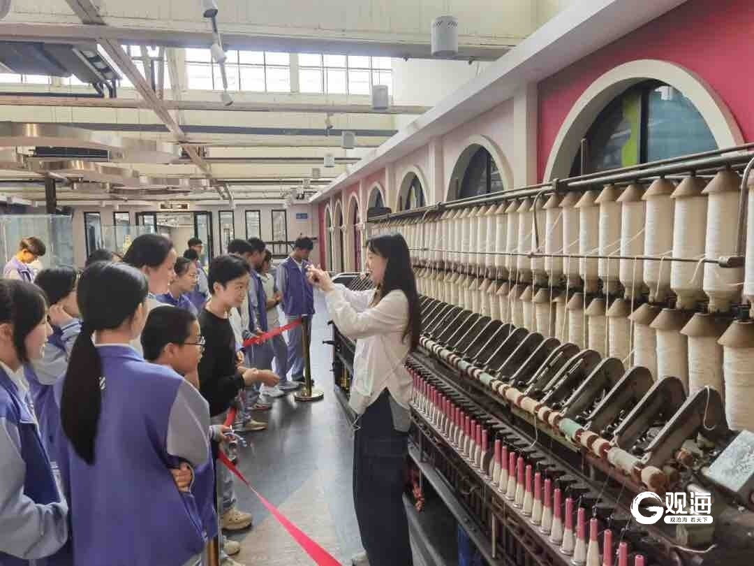 跟隨著講解員的步伐,孩子們步入的是歷史的長廊。從“上青天”的傳奇到郝建秀小組的輝煌,一張張老照片、一份份珍貴文獻,將青島紡織業伴隨民族工業崛起、歷經戰火洗禮、在新中國建設中擔當重任的壯闊畫卷徐徐展開。同學們凝神靜聽,不時發出驚嘆。當了解到這些已銹跡斑斑的機器曾織出支撐國家經濟命脈的布匹,也曾浸潤著幾代紡織工人們的汗水與智慧時,大家對“勞動光榮、創造偉大”有了更直觀而深刻的理解。在布滿紡織設備的車間里,一臺臺歷經百年的粗紗機、細紗機、織布機雖已停止轟鳴,但透過它們靜默的姿態,仿佛能聽到昔日萬錠齊鳴的恢宏交響。(青島日報/觀海新聞記者 崔燕 )