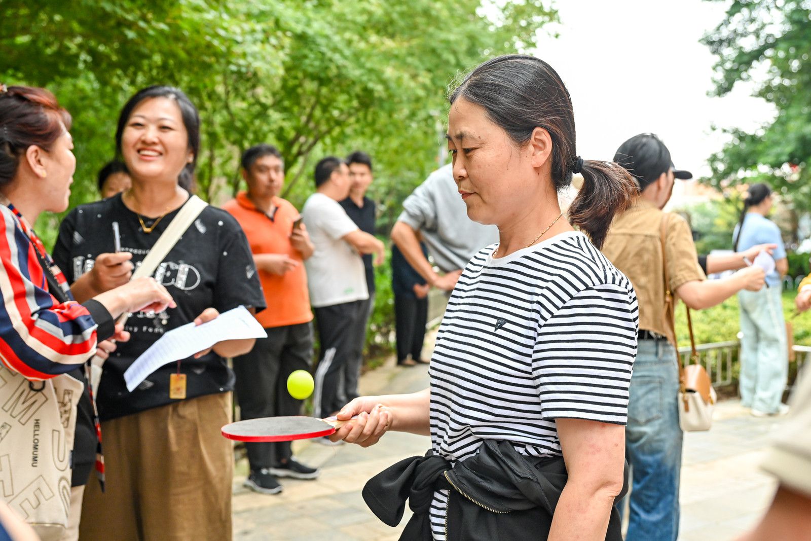 這場運動會精心設(shè)計了十余項趣味項目,既有考驗協(xié)調(diào)性的經(jīng)典項目,也有充滿懷舊感的互動游戲:繩子翻飛間,“跳繩”項目里老少選手各顯神通,有的節(jié)奏穩(wěn)健、耐力十足,有的動作靈活、速度驚人;“投壺”區(qū)前,大家屏息瞄準(zhǔn),箭矢入壺的瞬間總能引來陣陣歡呼,仿佛穿越回古時的休閑時光;“沙包投擲”考驗準(zhǔn)頭,選手們站定、瞄準(zhǔn)、投擲,看著沙包穩(wěn)穩(wěn)落在靶心,成就感滿滿;“呼啦圈”項目中,有人靈活轉(zhuǎn)動腰腹,呼啦圈像長在身上般不掉落,引得圍觀居民跟著拍手打節(jié)奏;“顛乒乓球”則是“手眼協(xié)作大挑戰(zhàn)”,乒乓球在球拍上輕盈跳躍,選手們?nèi)褙炞ⅲ乱粋€失誤讓球落地。