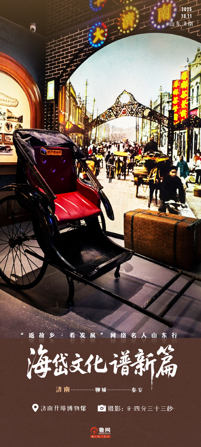 10月11日,由省委統戰部、省委網信辦聯合主辦,山東文旅傳媒集團、魯網承辦的“海岱文化譜新篇——‘返故鄉·看發展’網絡名人山東行”活動正式啟動。活動第一天,30余位網絡名人、媒體記者先后走進山東博物館、山東老字號暨非遺文化體驗館、百花洲傳統工藝工作站、濟南開埠博物館等地,感受山東在推動傳統文化傳承創新、文旅融合發展、經濟高質量發展等方面取得的豐碩成果。